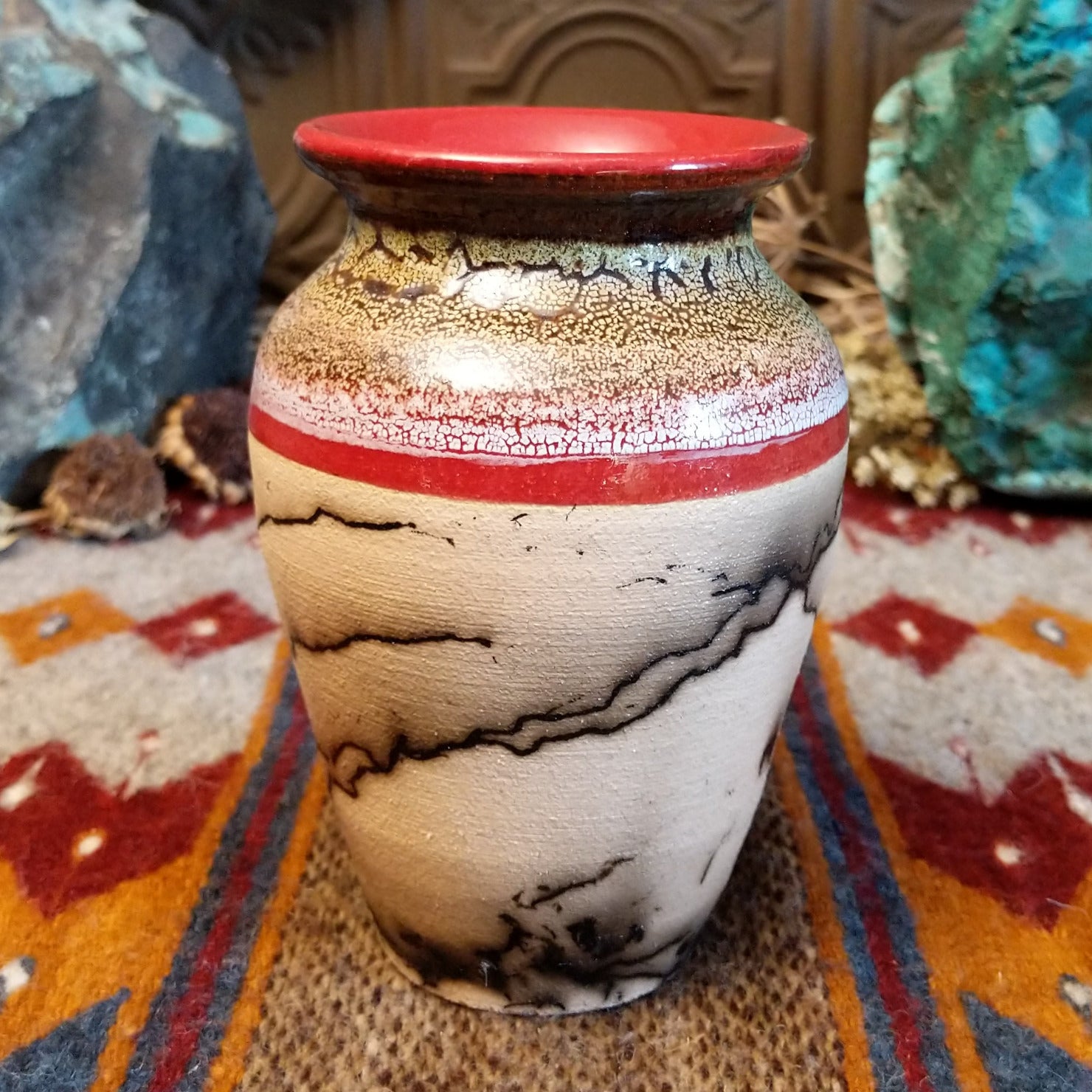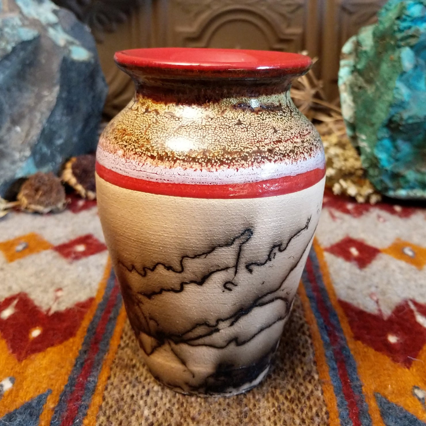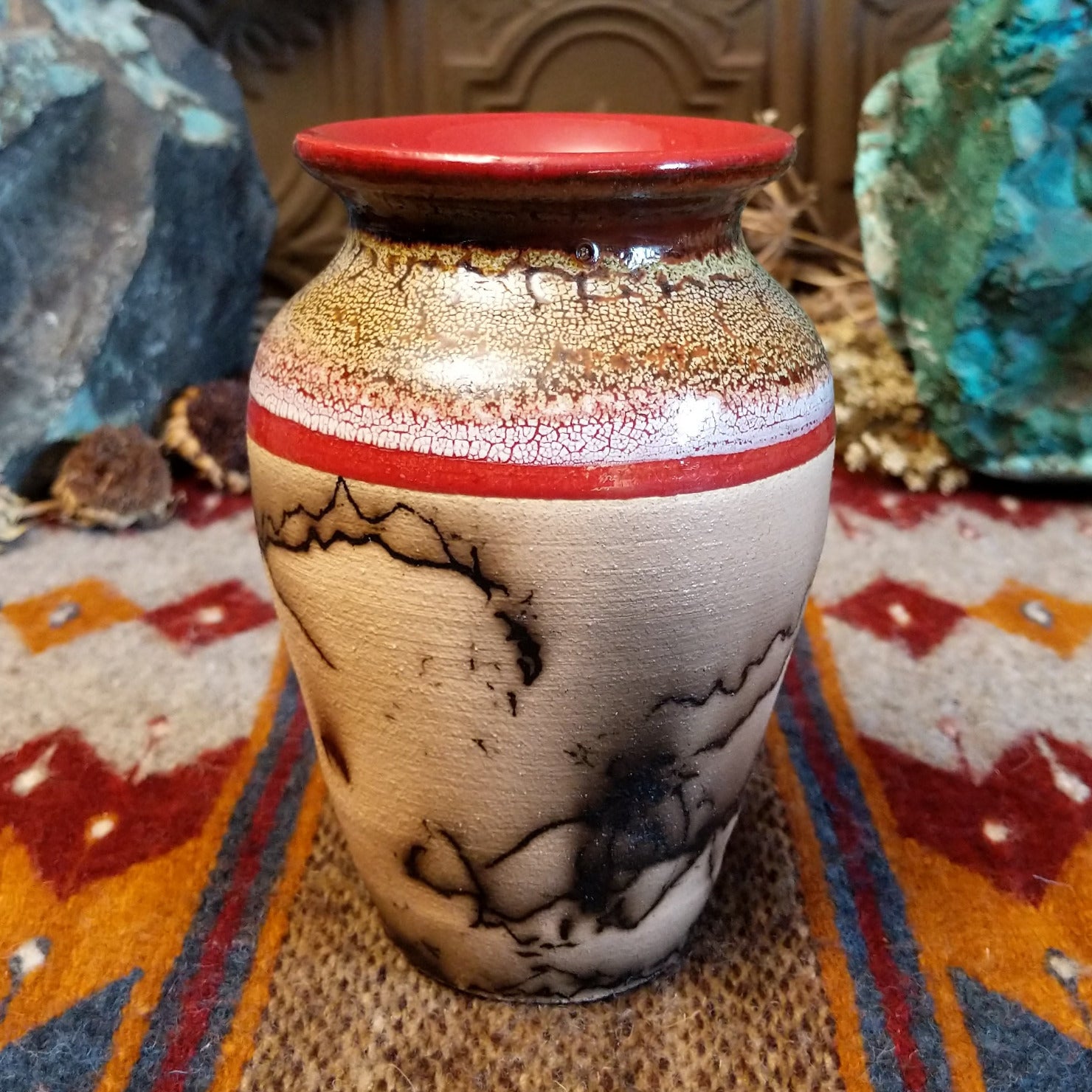 Dappled Raku Horsehair Pottery by Roger Calhoun GF-POT-0034