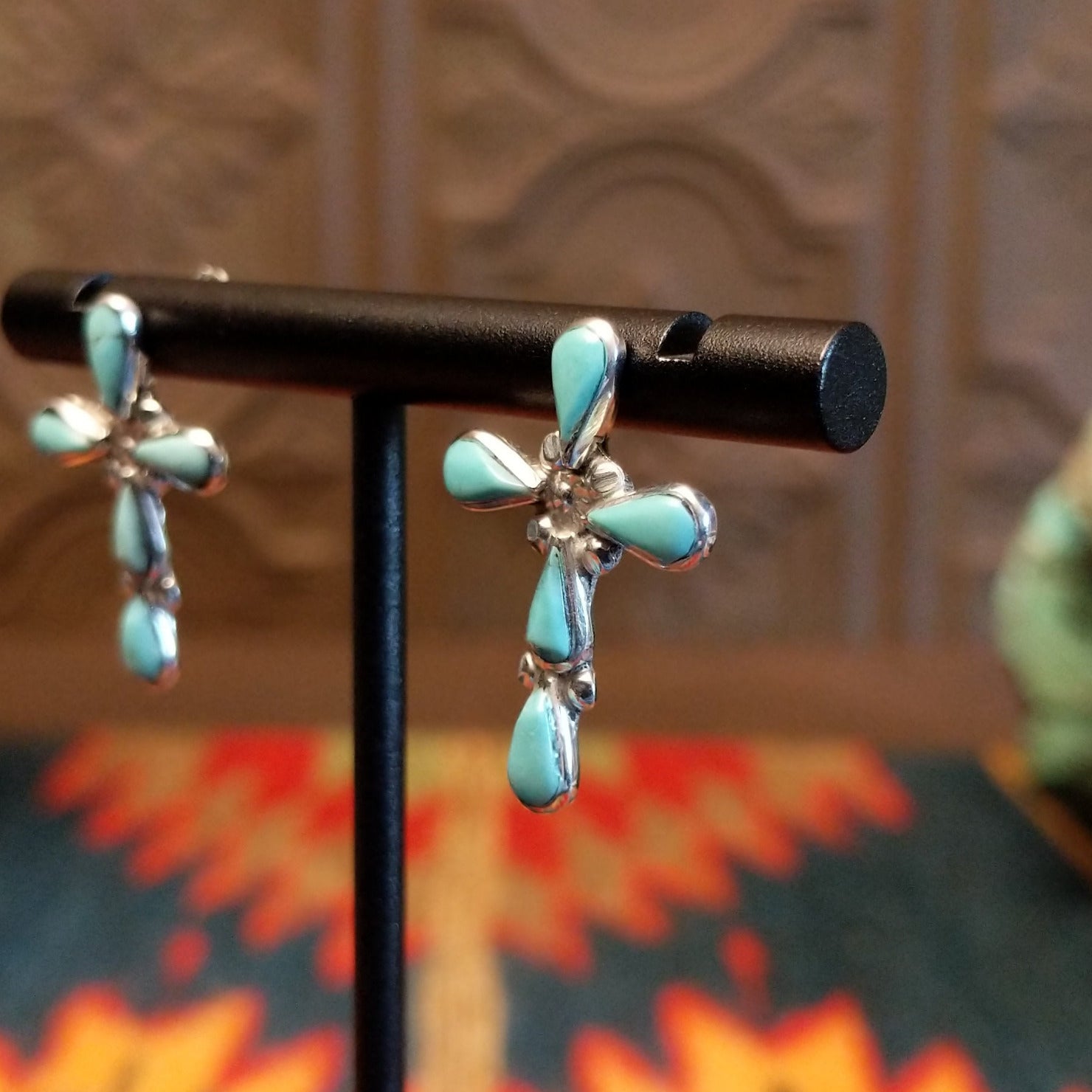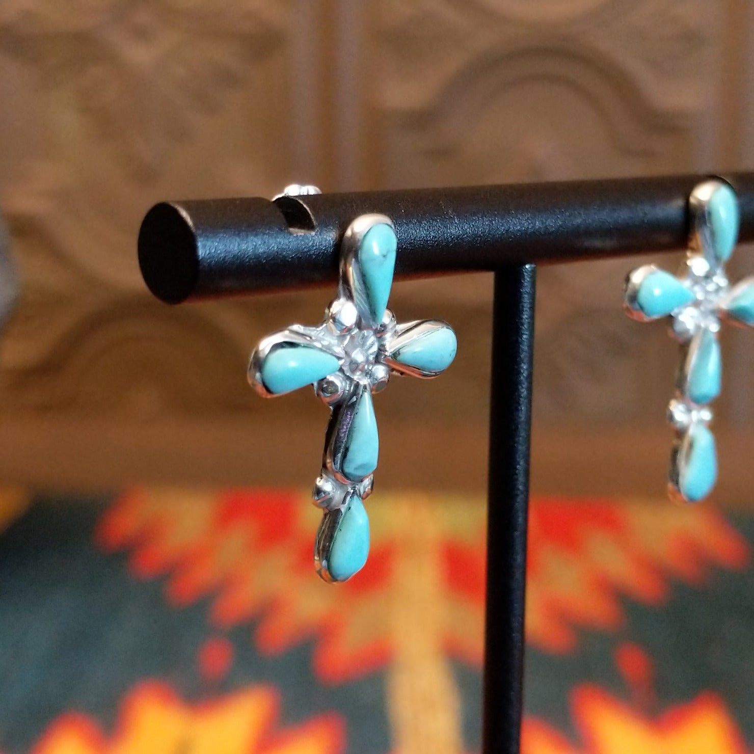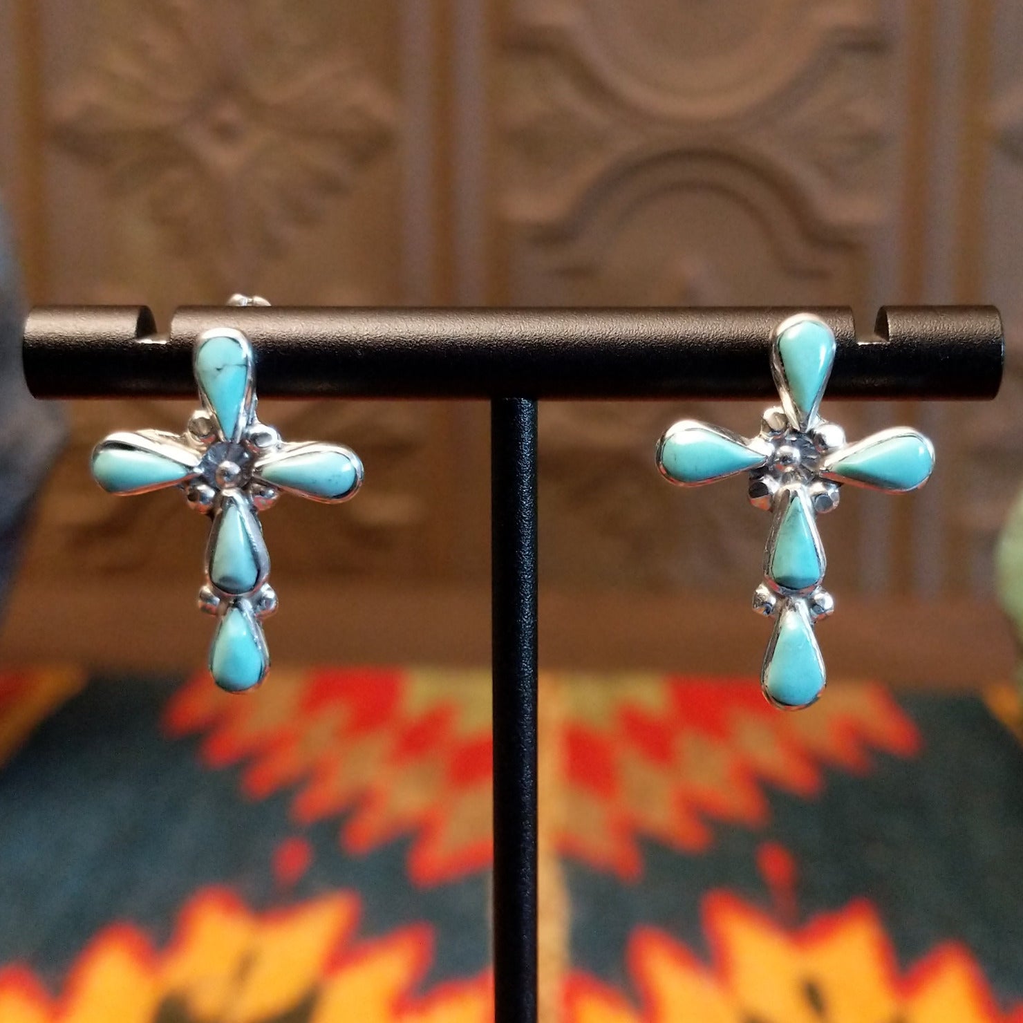 Navajo Turquoise Teardrop Cross Earrings GJ-ERN-0201