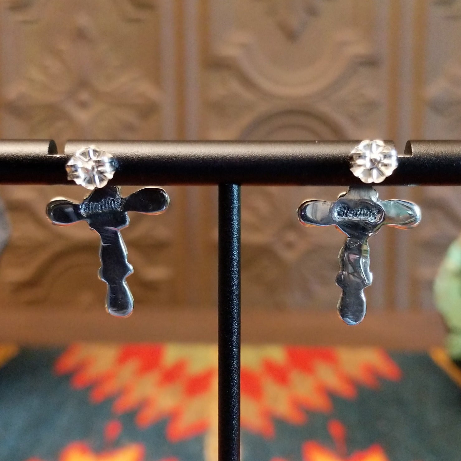 These Navajo made sterling silver cross earrings features turquoise set in teardrop-shaped bezels. Each connected by dotted accents, this is a stunning piece that can be worn for everyday occasions.