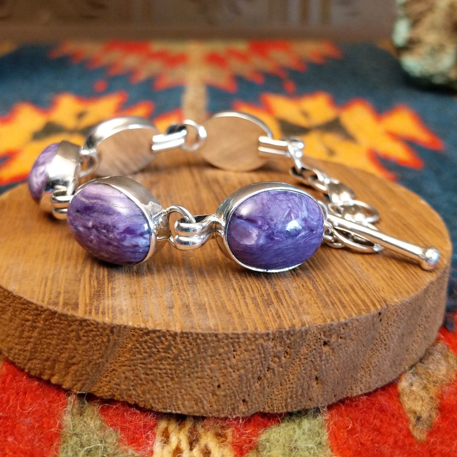 Charoite Oval Link Bracelet by Larry Pacheco GJ-BRC-0216
