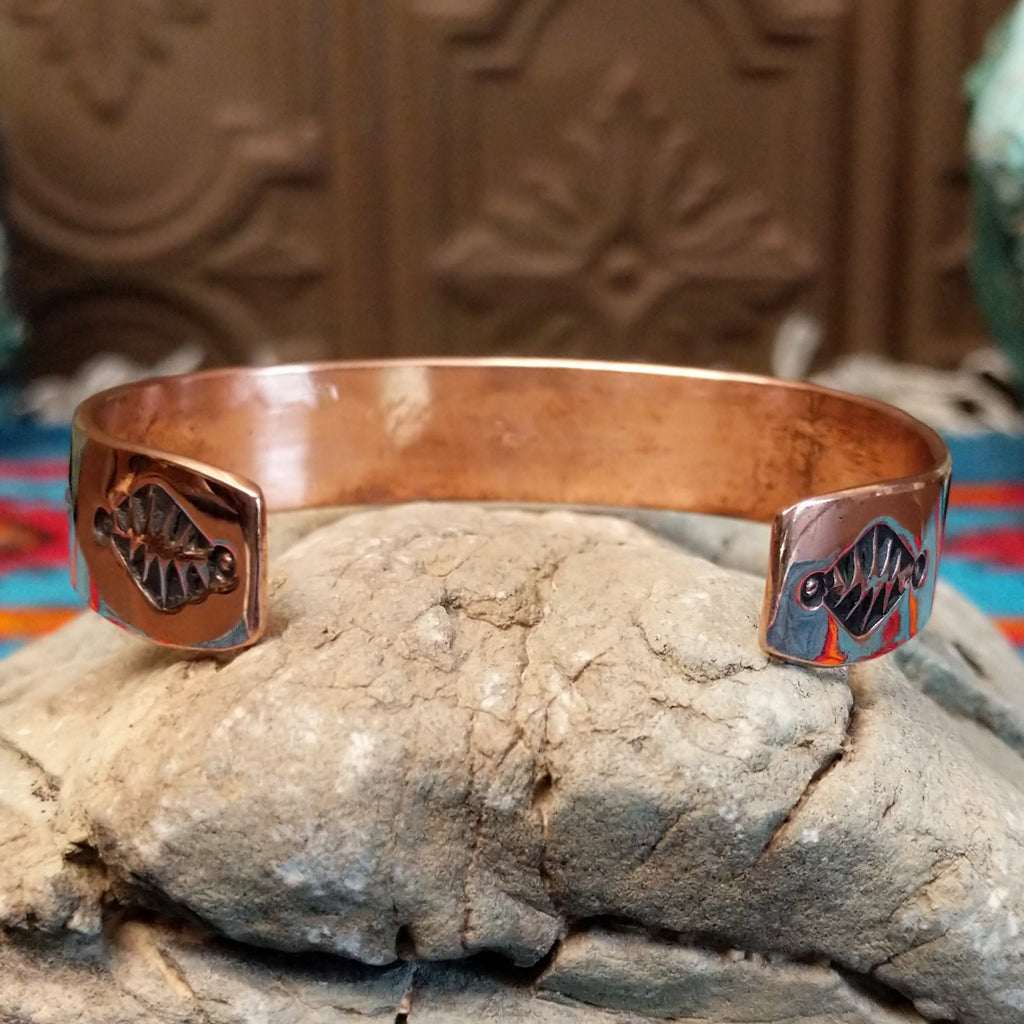 Diverging Sun Stamped Copper & Silver Cuff by Robert Little GJ-BRC-0164