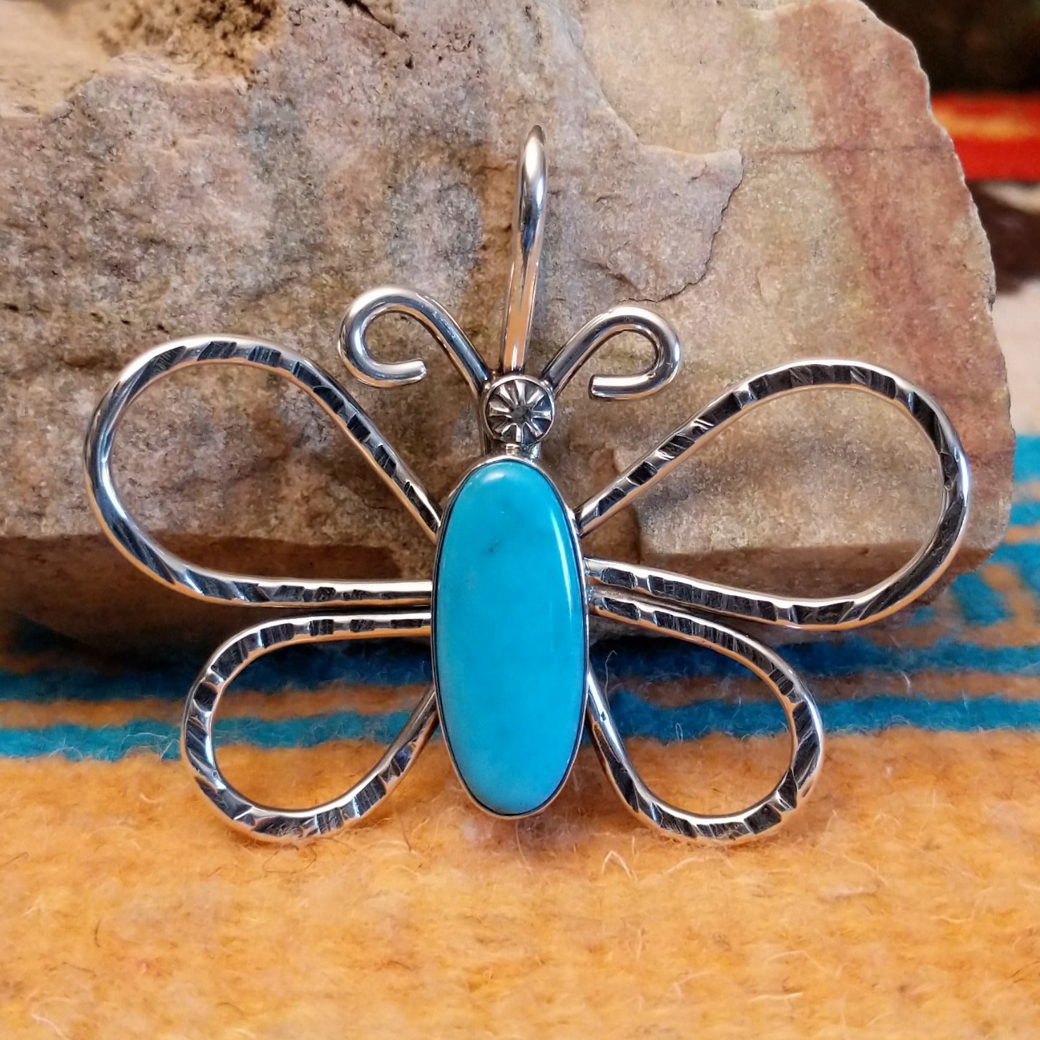 Kingman Turquoise Butterfly Pendant by Everett & Mary Teller GJ-PND-0254