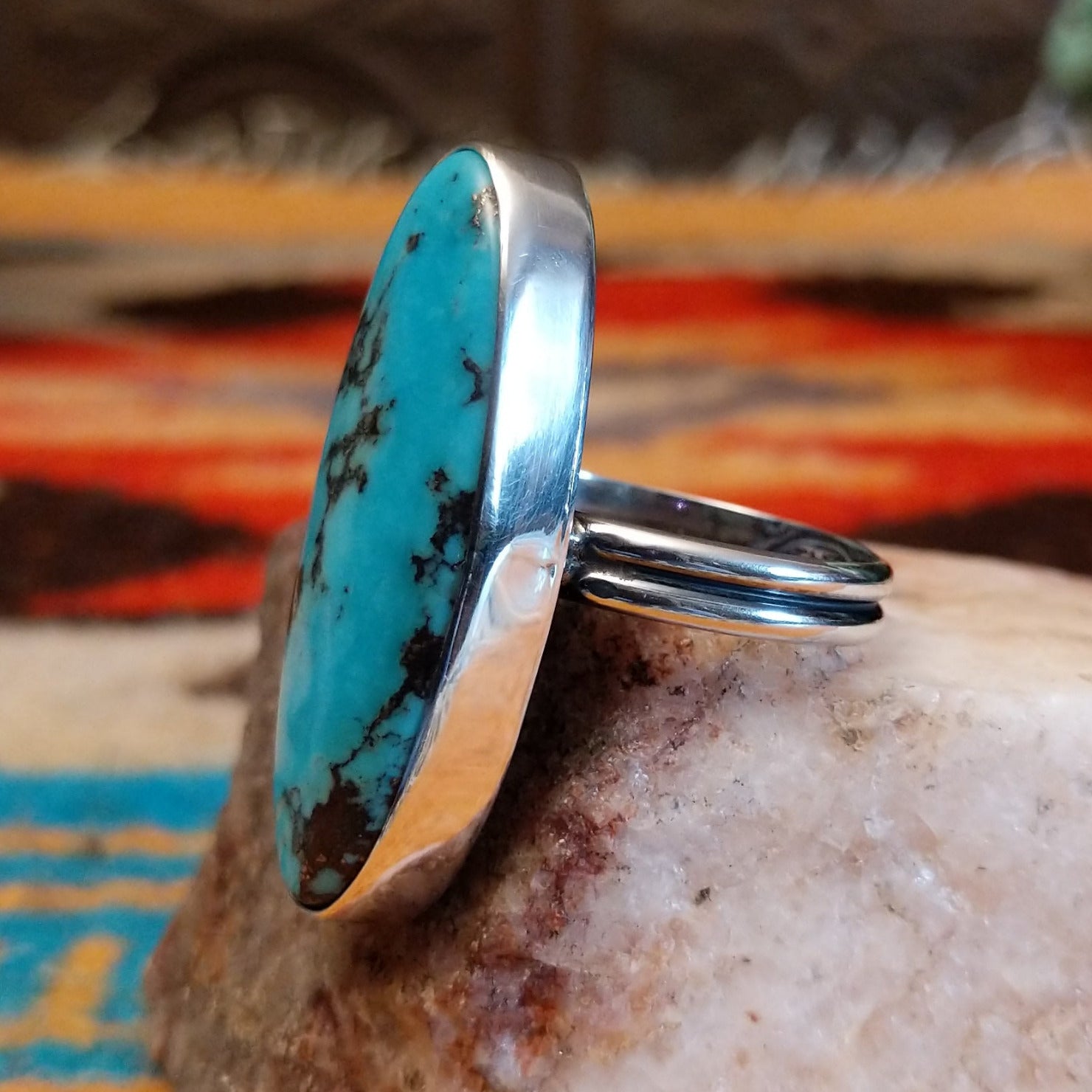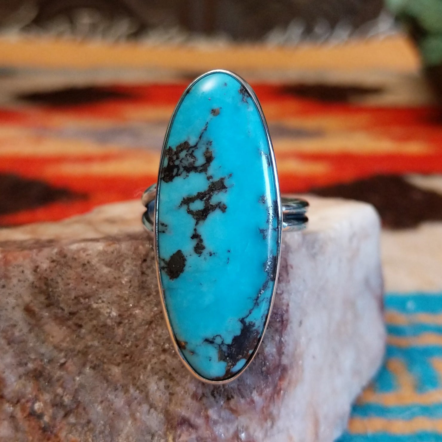Kingman Turquoise Ellipse Ring by Everett & Mary Teller GJ-RNG-0370 Size 10