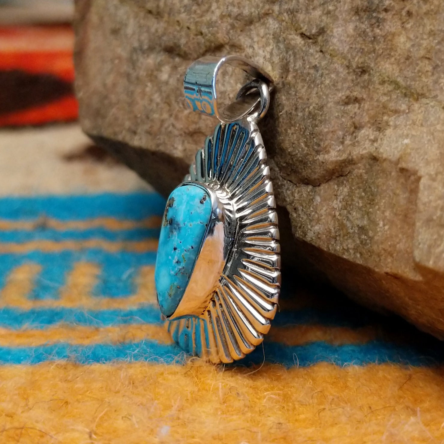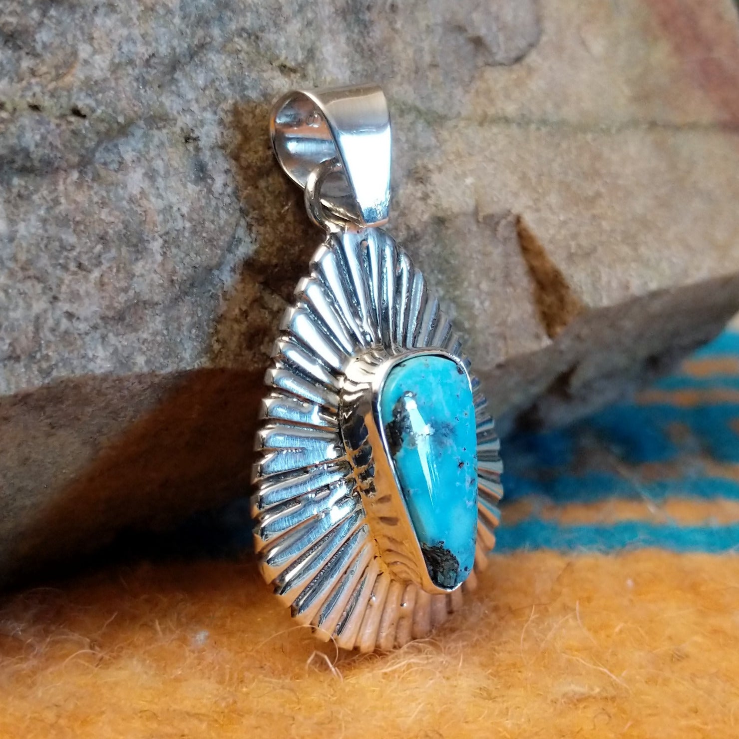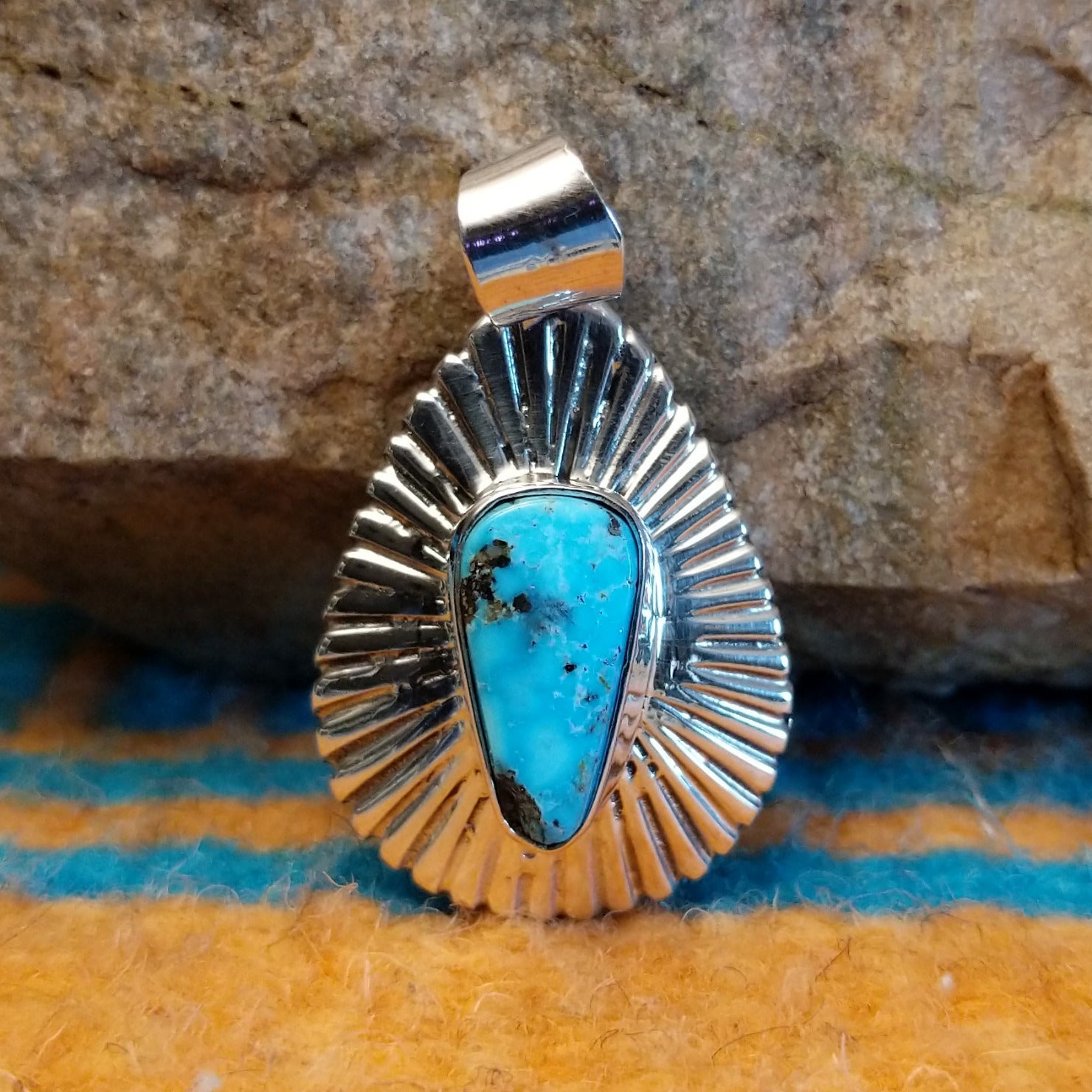 Kingman Turquoise Ray Pendant by Charley Begay GJ-PND-0248