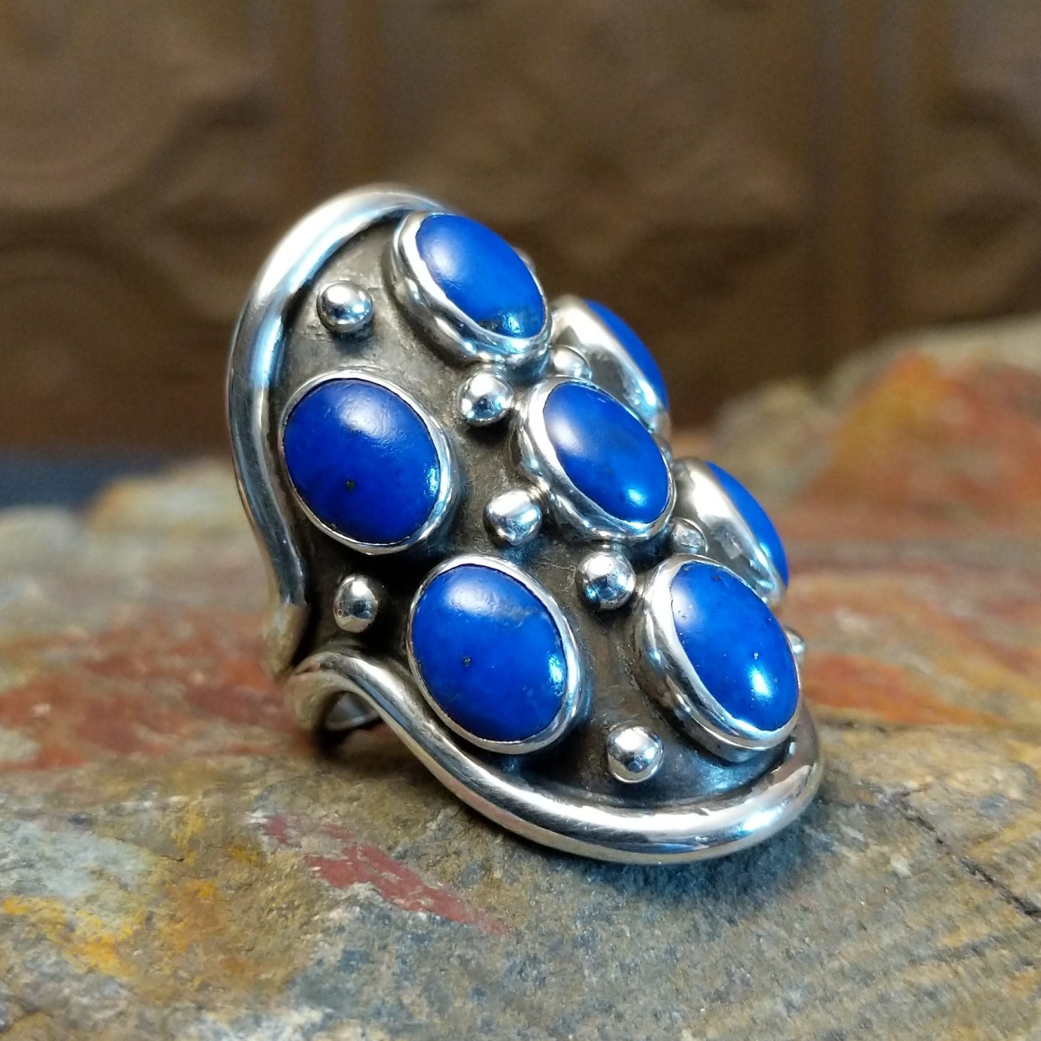 Lapis Cluster Saddle Ring by Darrin Livingston GJ-RNG-0302 Size 6.5
