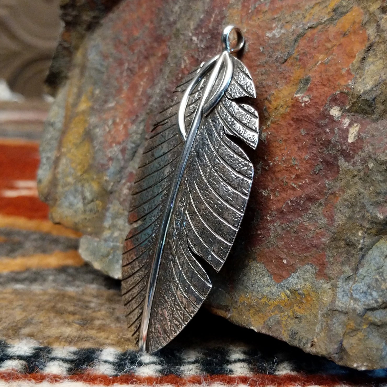 Large Silver Feather Pendant by Joe Piaso Jr. GJ-PND-0170