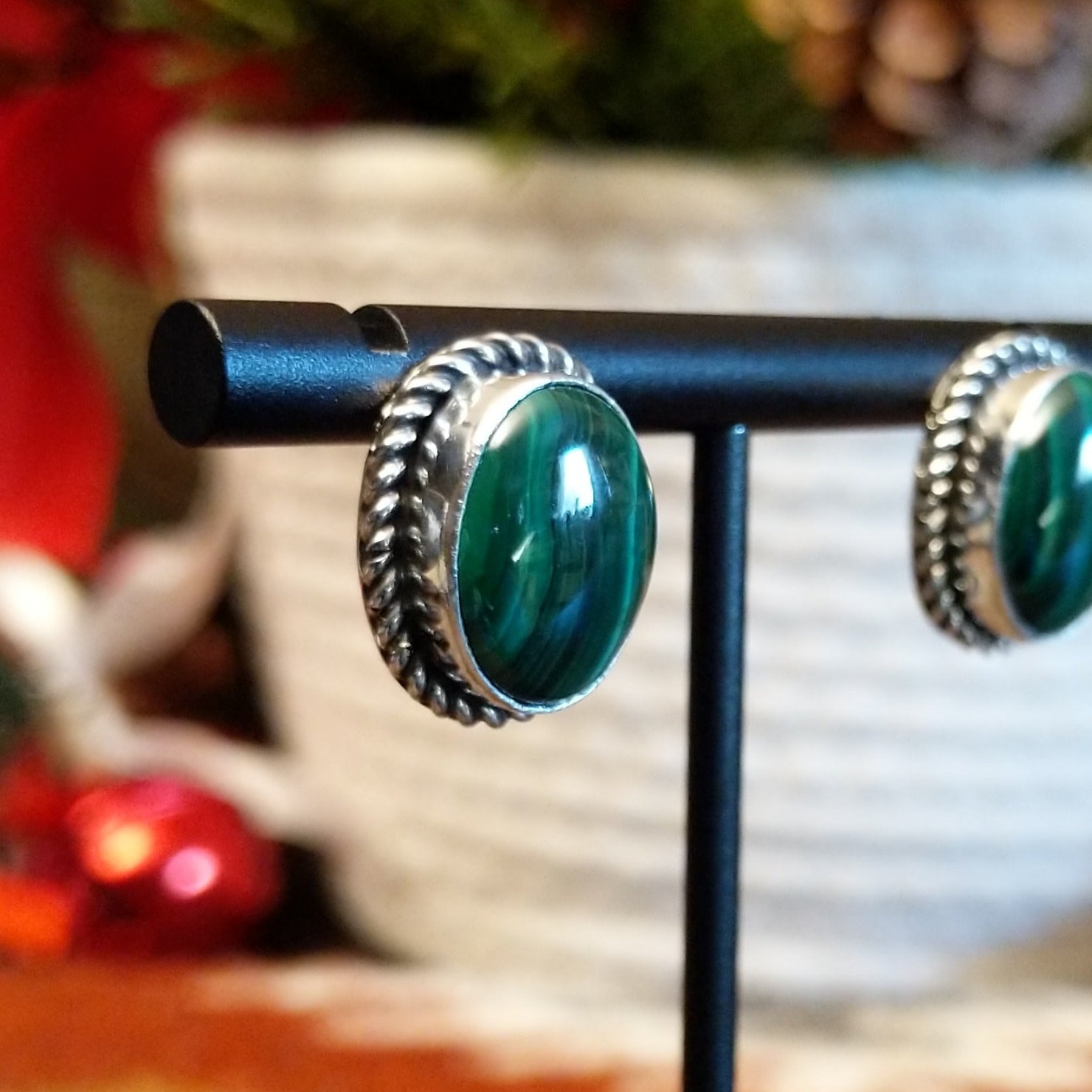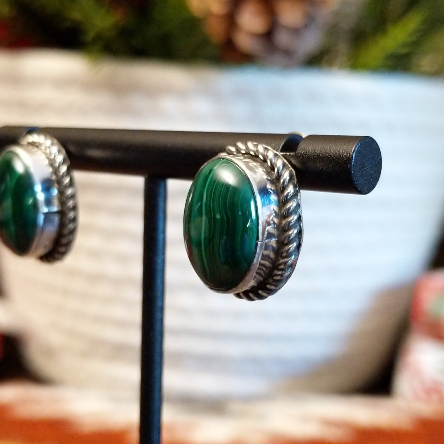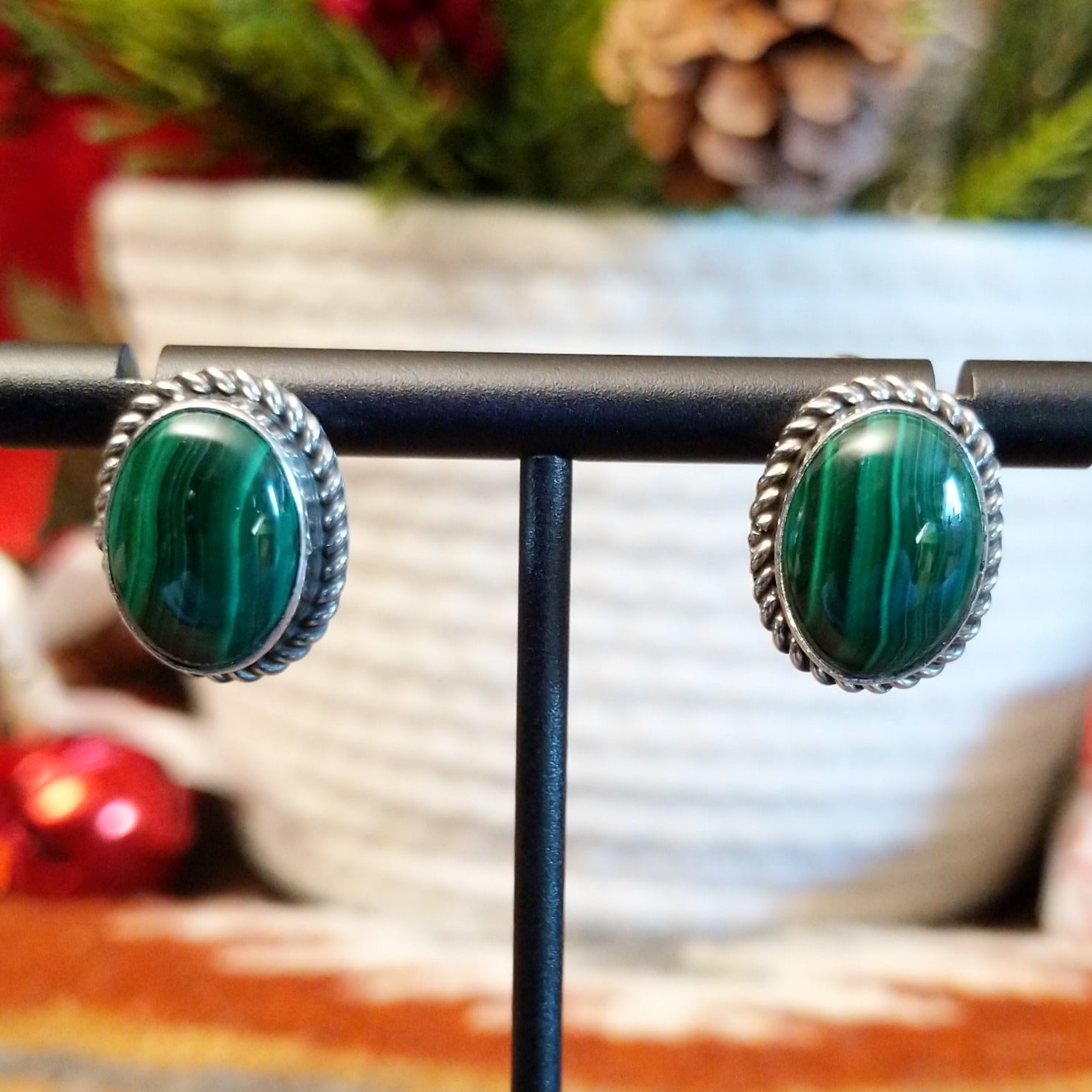 Malachite Oval Earrings by Jimmie Patterson GJ-ERN-0164