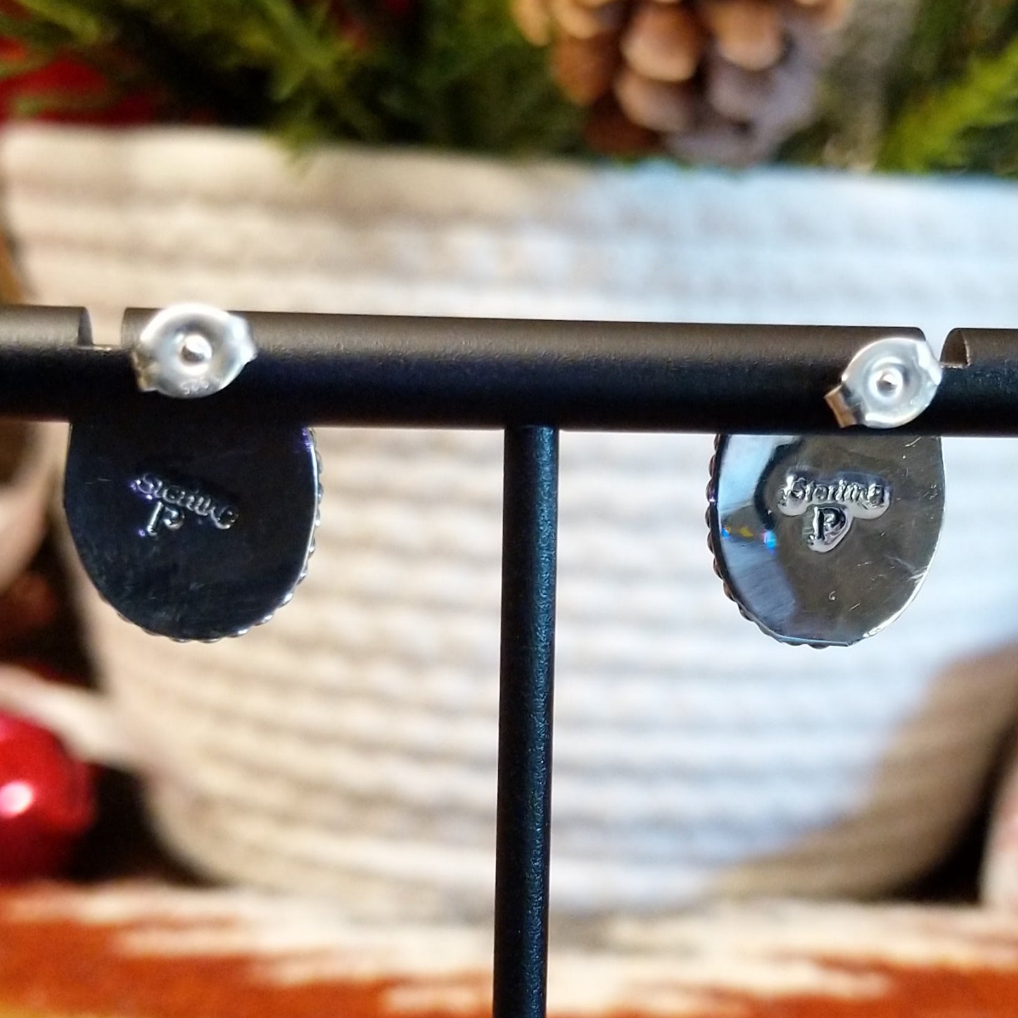 Handcrafted by Navajo artisan Jimmie Patterson, these sterling silver earrings showcase vibrant malachite ovals set in secure bezels and framed by distinctive twisted rope detailing. The rich green banding in the malachite against polished silver creates an elegant, timeless piece that honors its metalworking techniques.