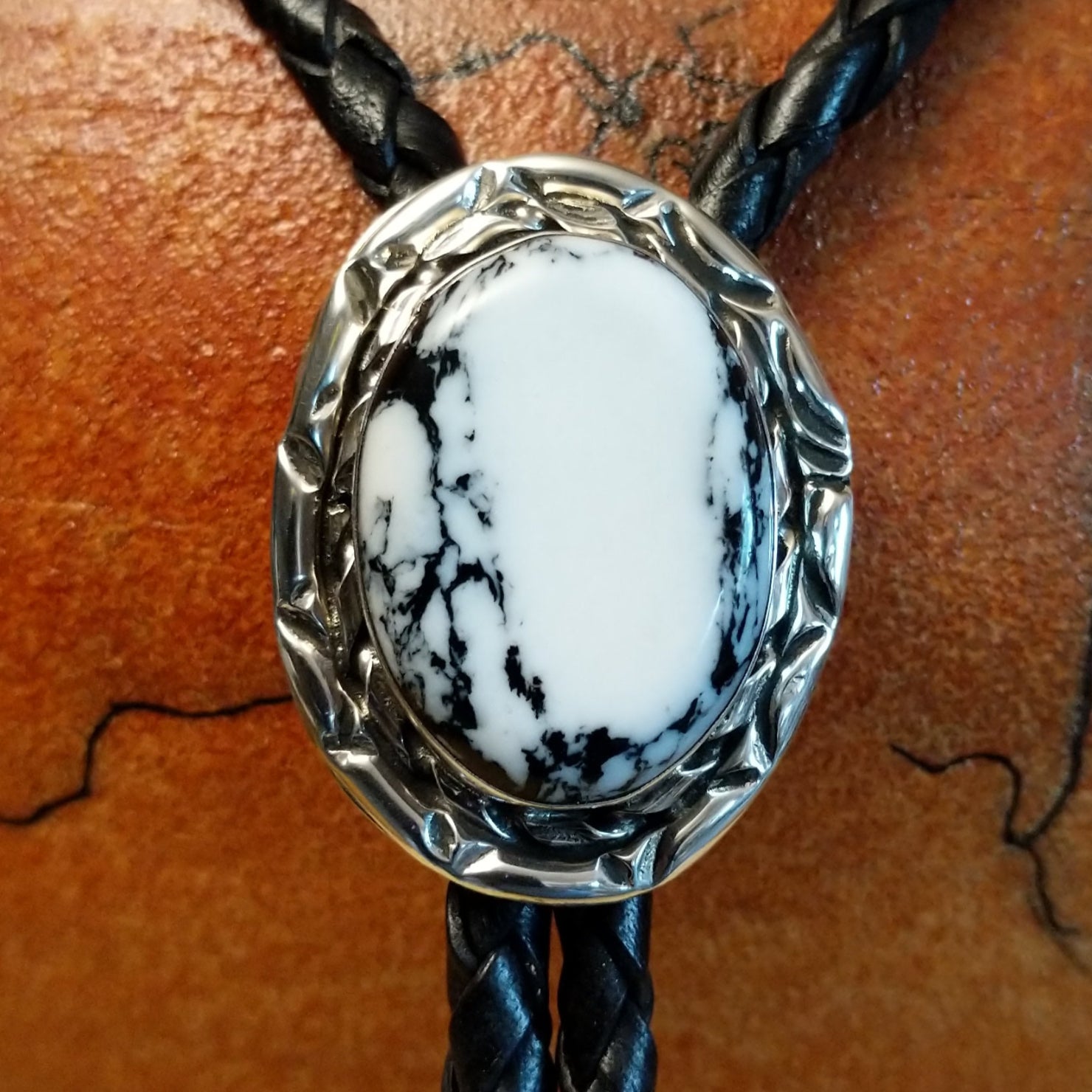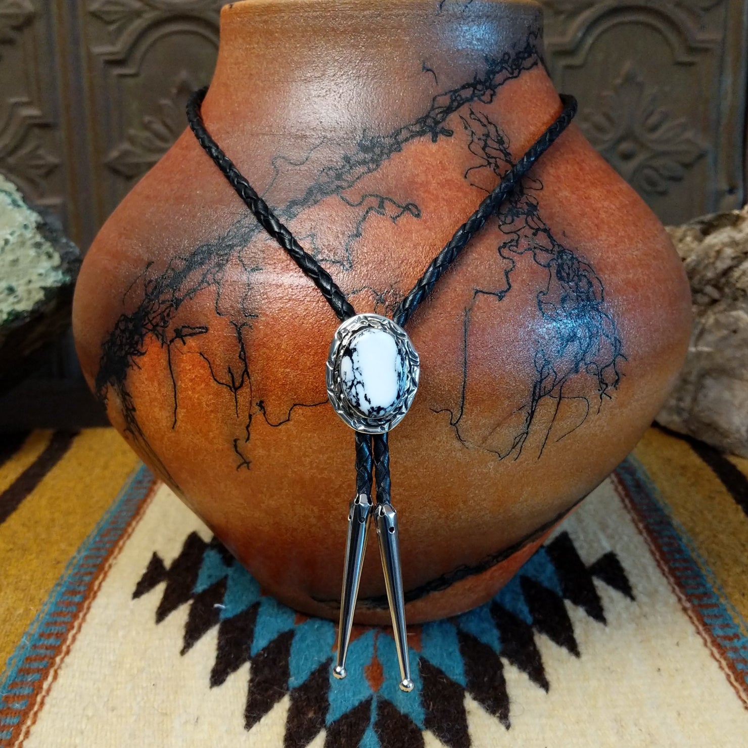Navajo Made White Buffalo Bolo Tie SWSG-BOL-0007