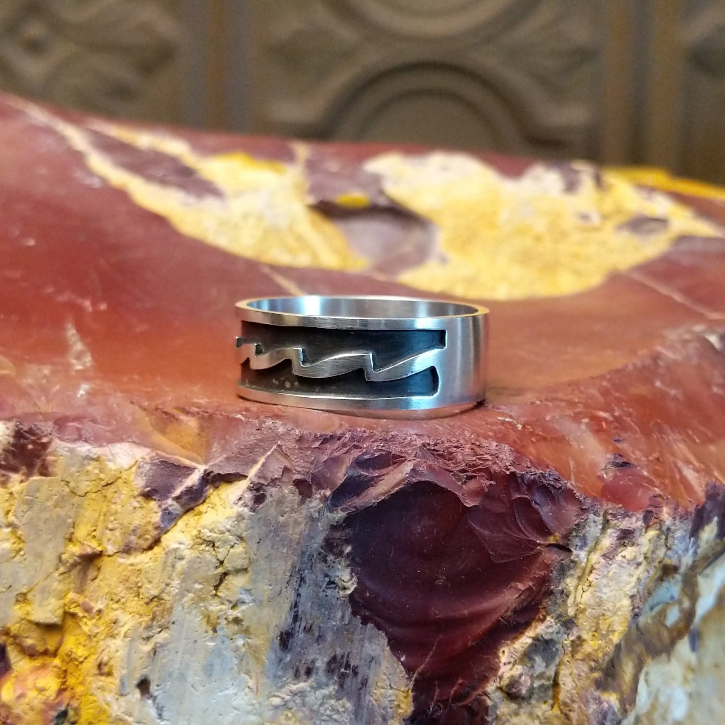 Navajo Silver Zigzag Ring by L.G. GJ-RNG-0241 Size 10.75
