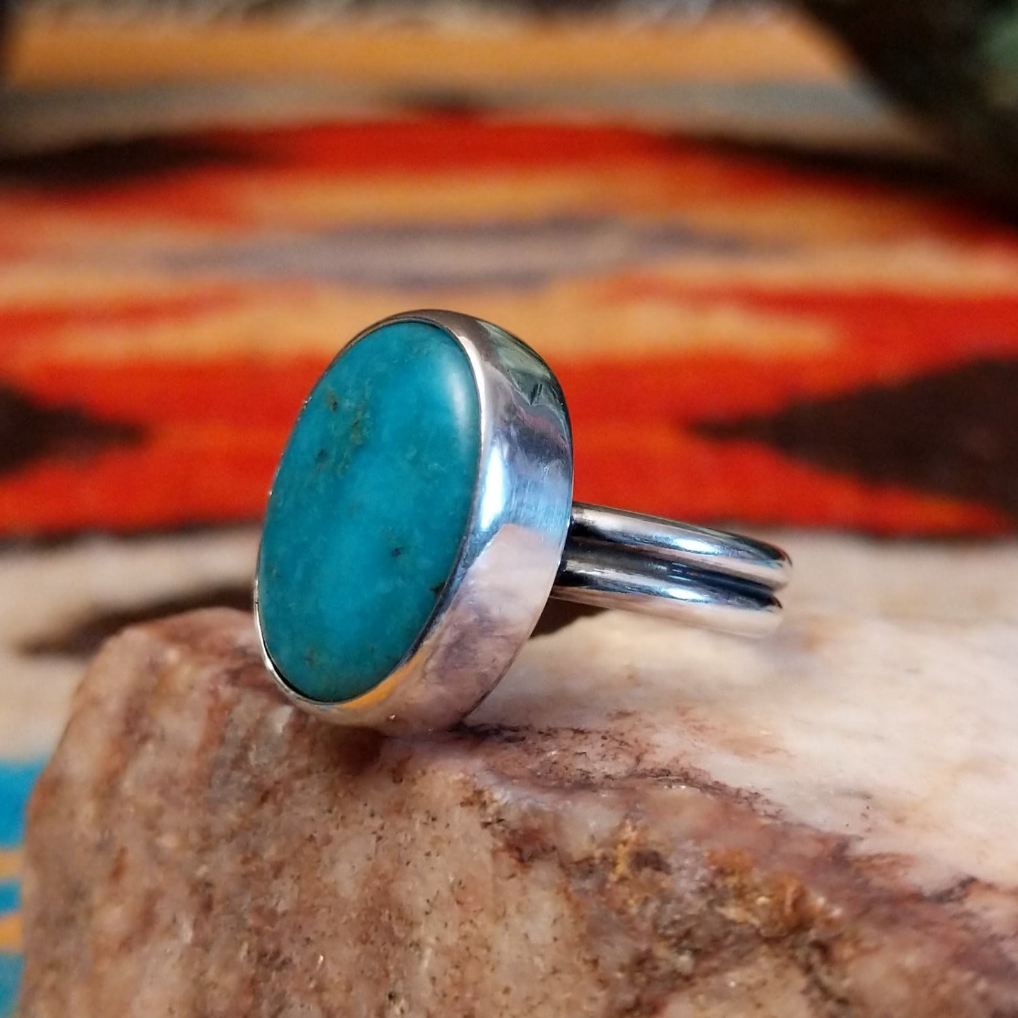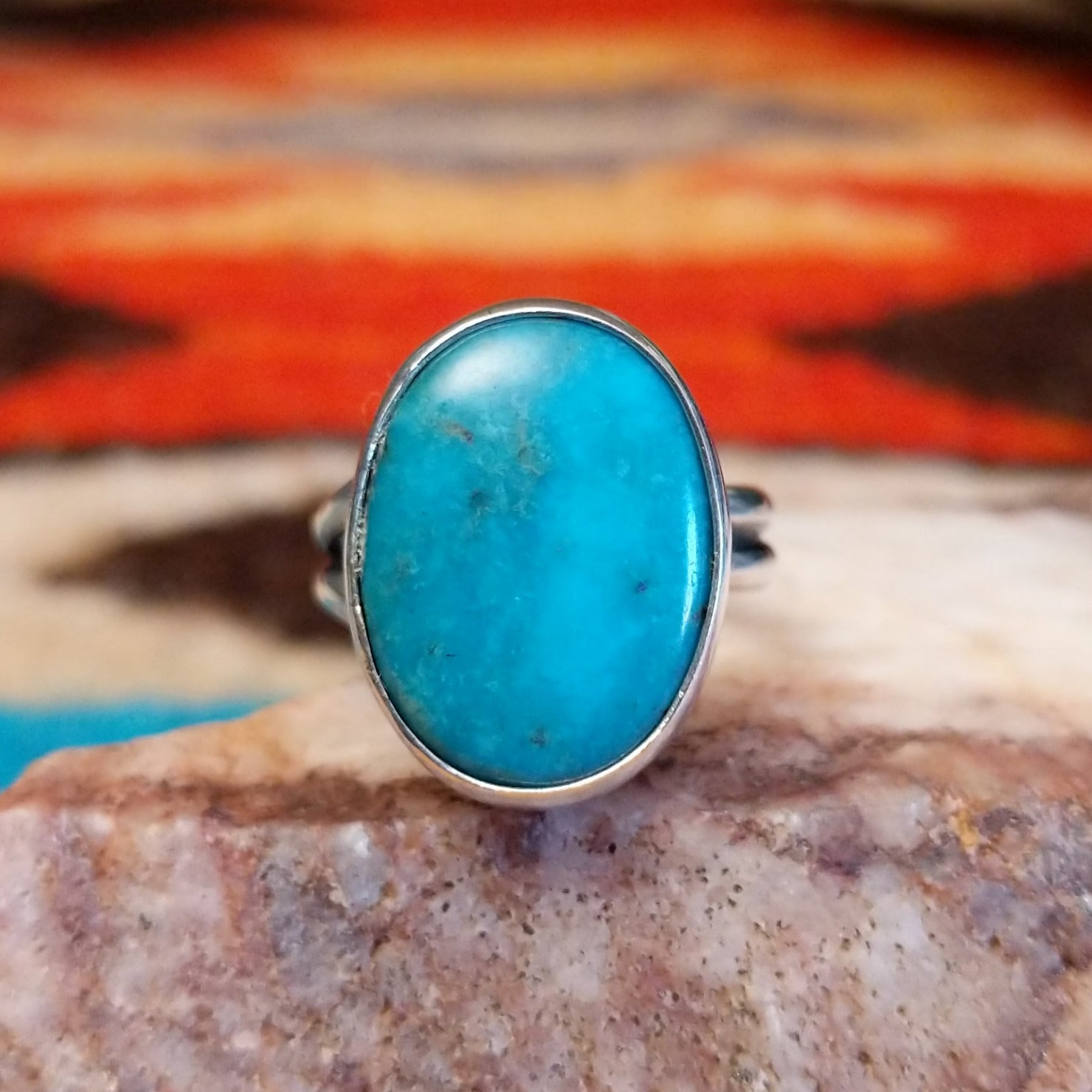 Oval Kingman Turquoise Ring by Everett & Mary Teller GJ-RNG-0358 Size 5