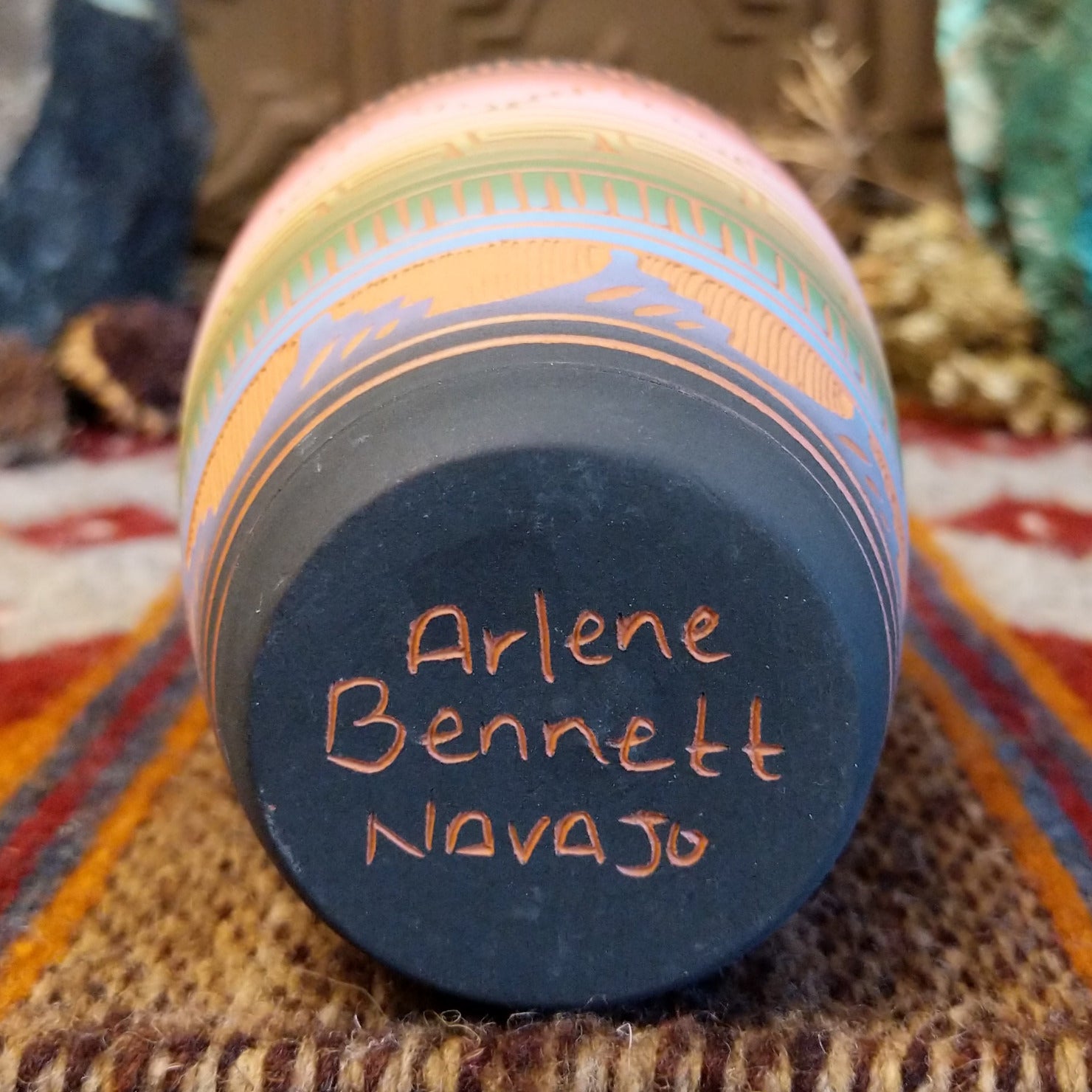 Navajo Etched Blue-rimmed Rainbow Pottery by Arlene Bennett SWT-POT-0138
