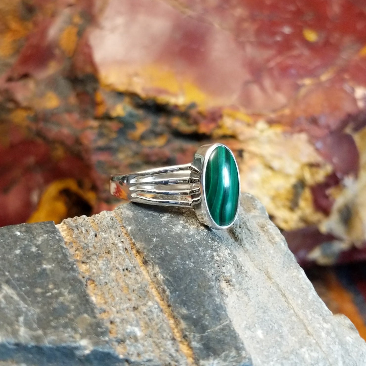 Malachite Split Ring by Raymond Coriz GJ-RNG-2000 Size 7