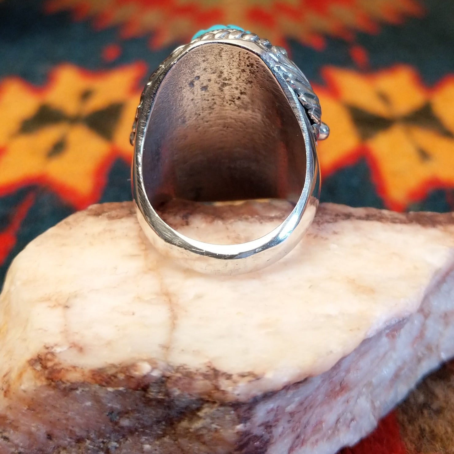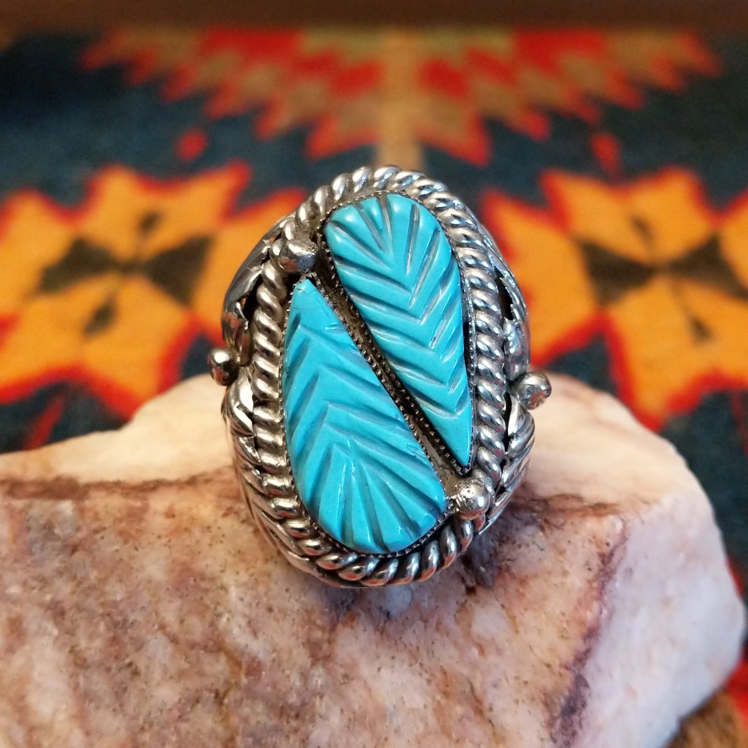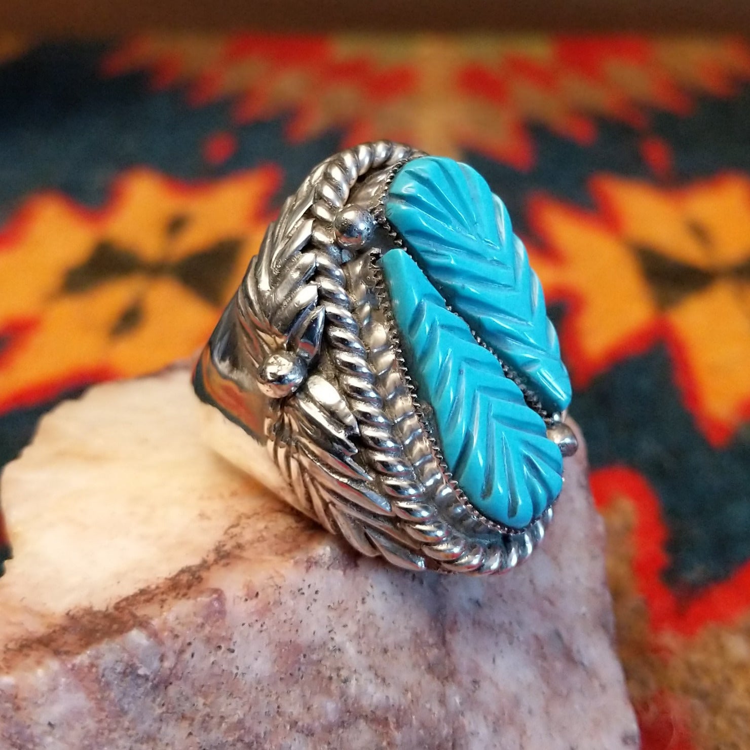Navajo Feathered Turquoise Ring GJ-RNG-0351 Size 9.75