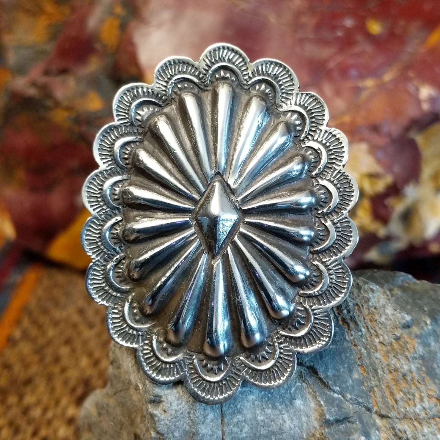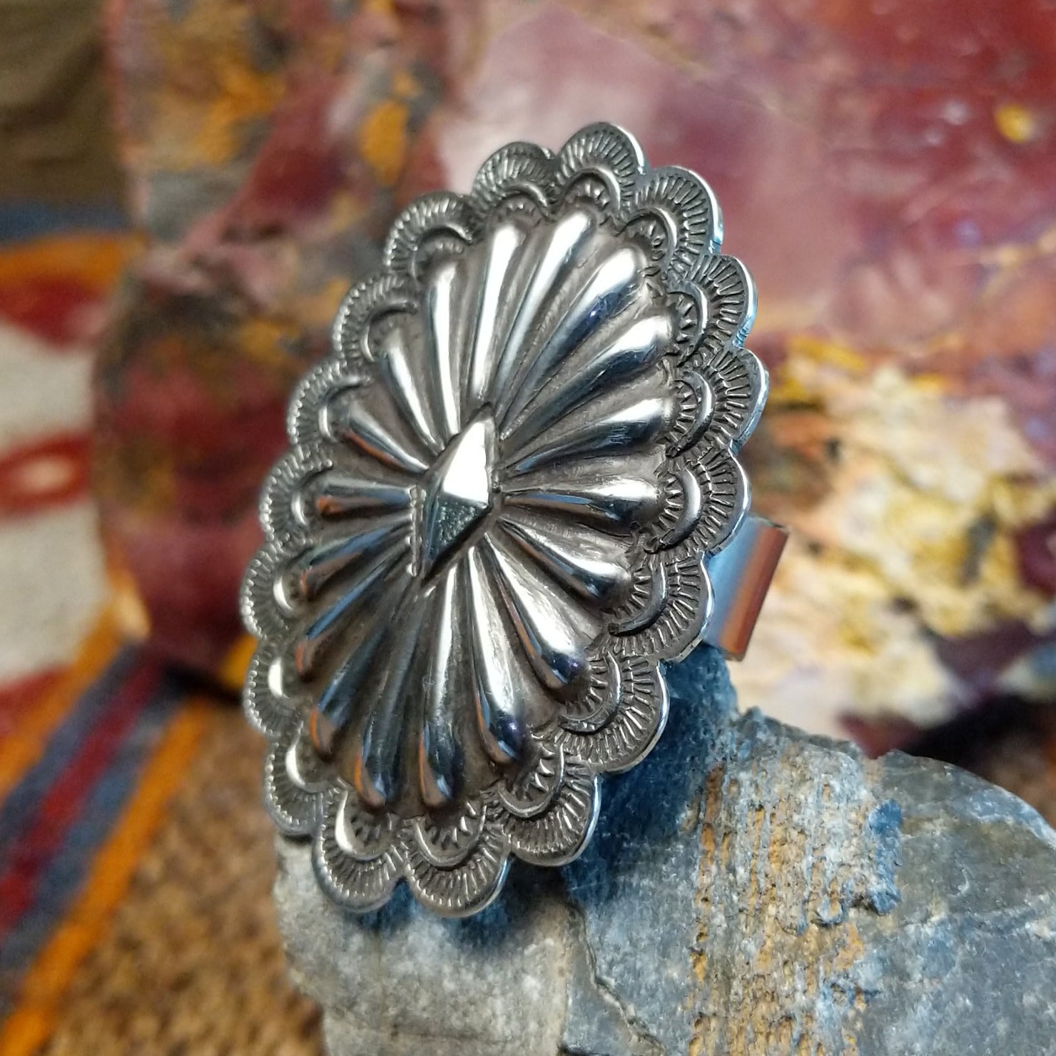 Silver Concho Ring By Vincent James Platero GJ-RNG-2003 Size 8