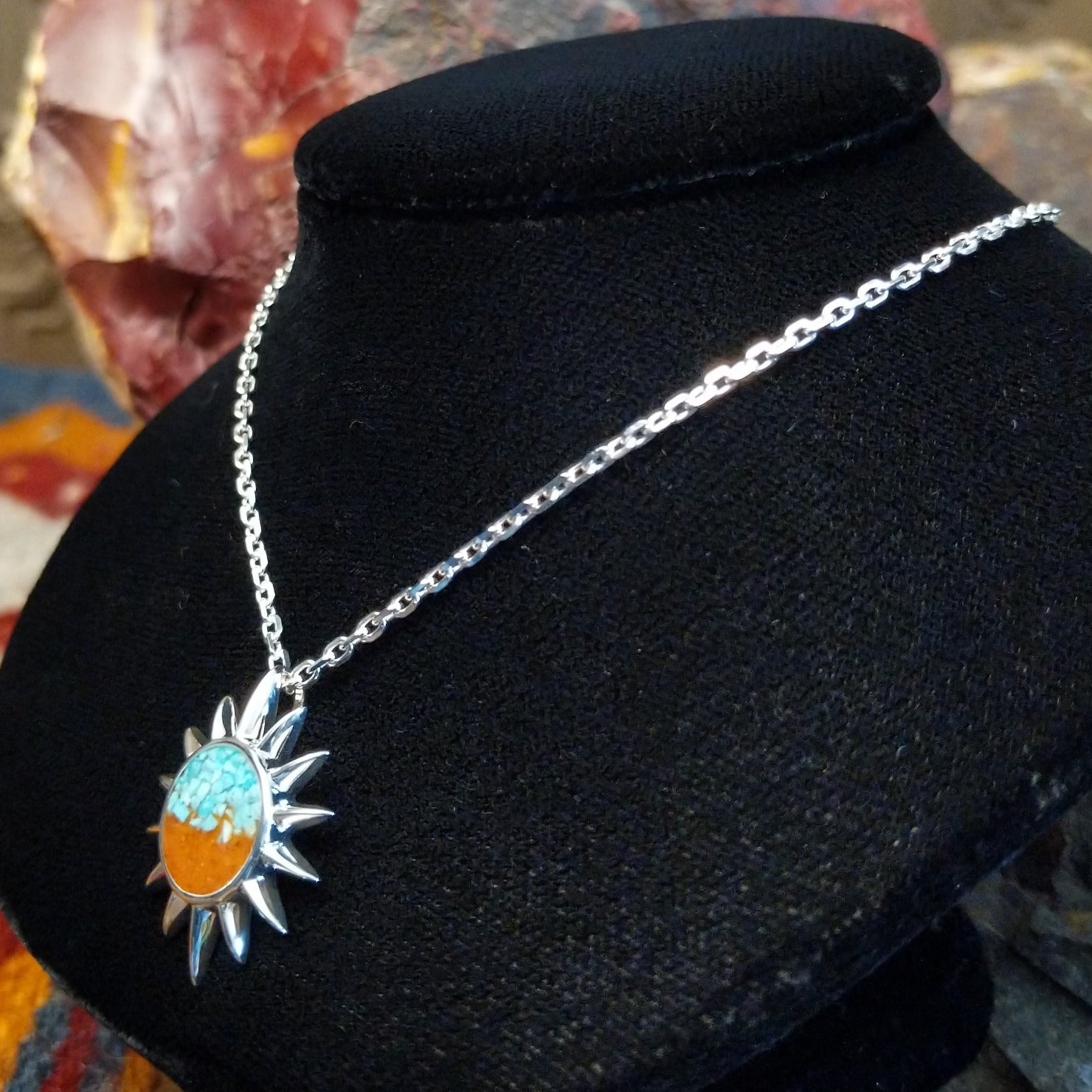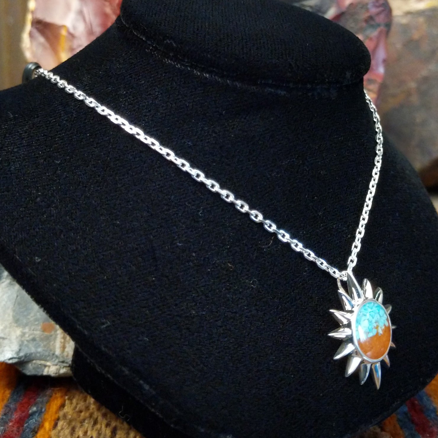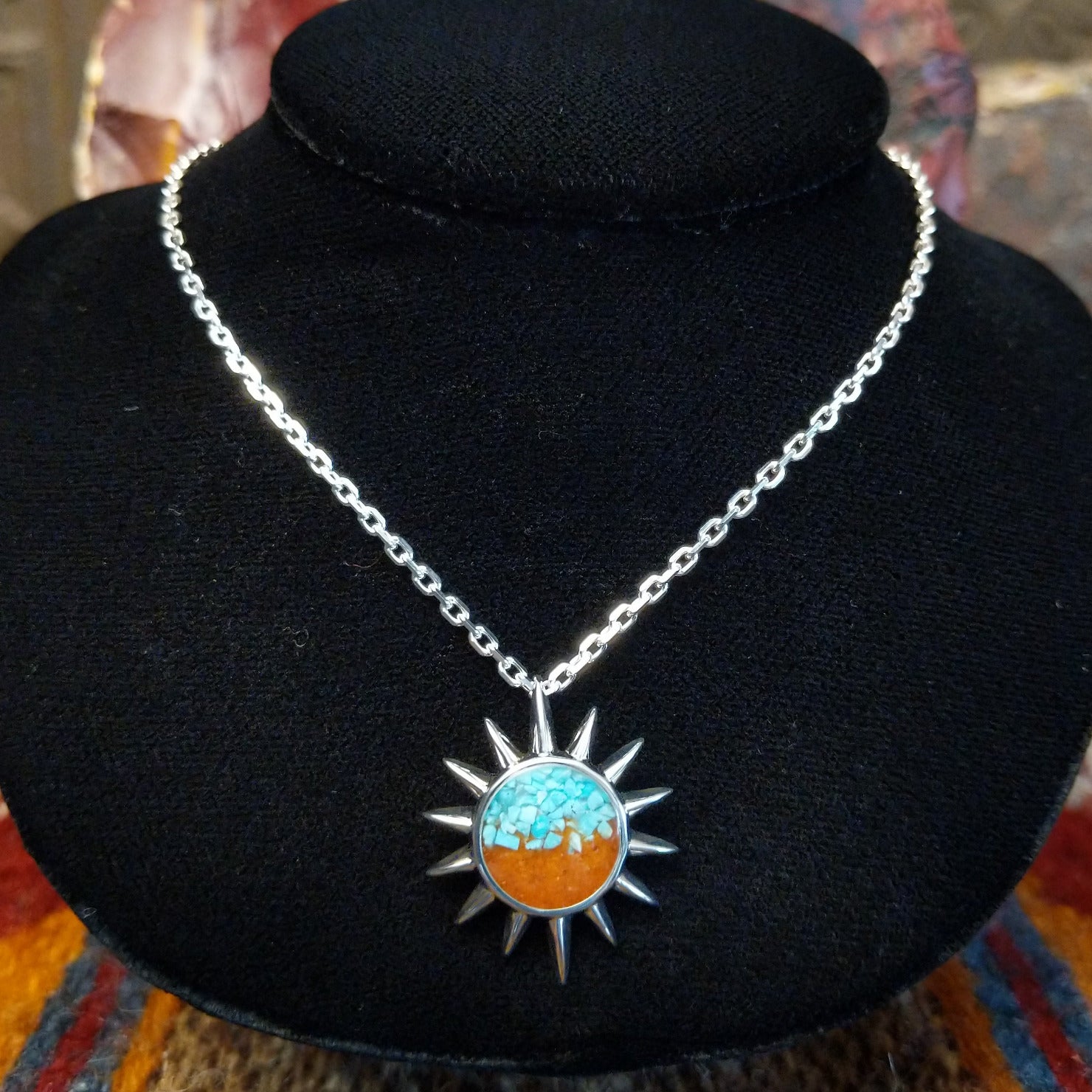 Arizona Sand & Turquoise Sterling Silver Sun Necklace by Dune Jewelry GF-NKL-GSUNNSADJC