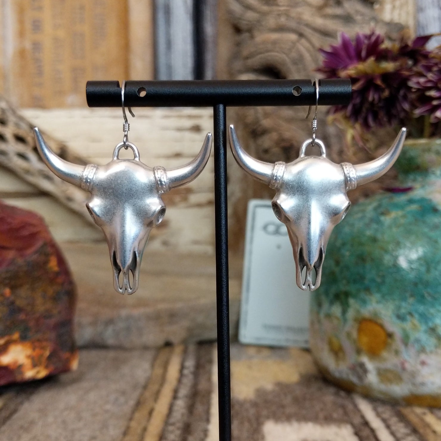 Created by Cowboy Collectibles, the Chisholm earrings capture the wild spirit of the plains with their striking metal bull skull design. Each piece's rugged elegance makes it a bold statement for any adventurer.