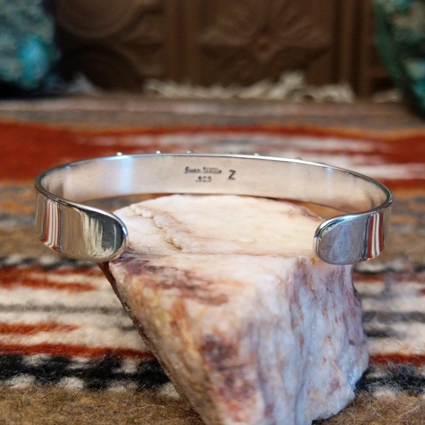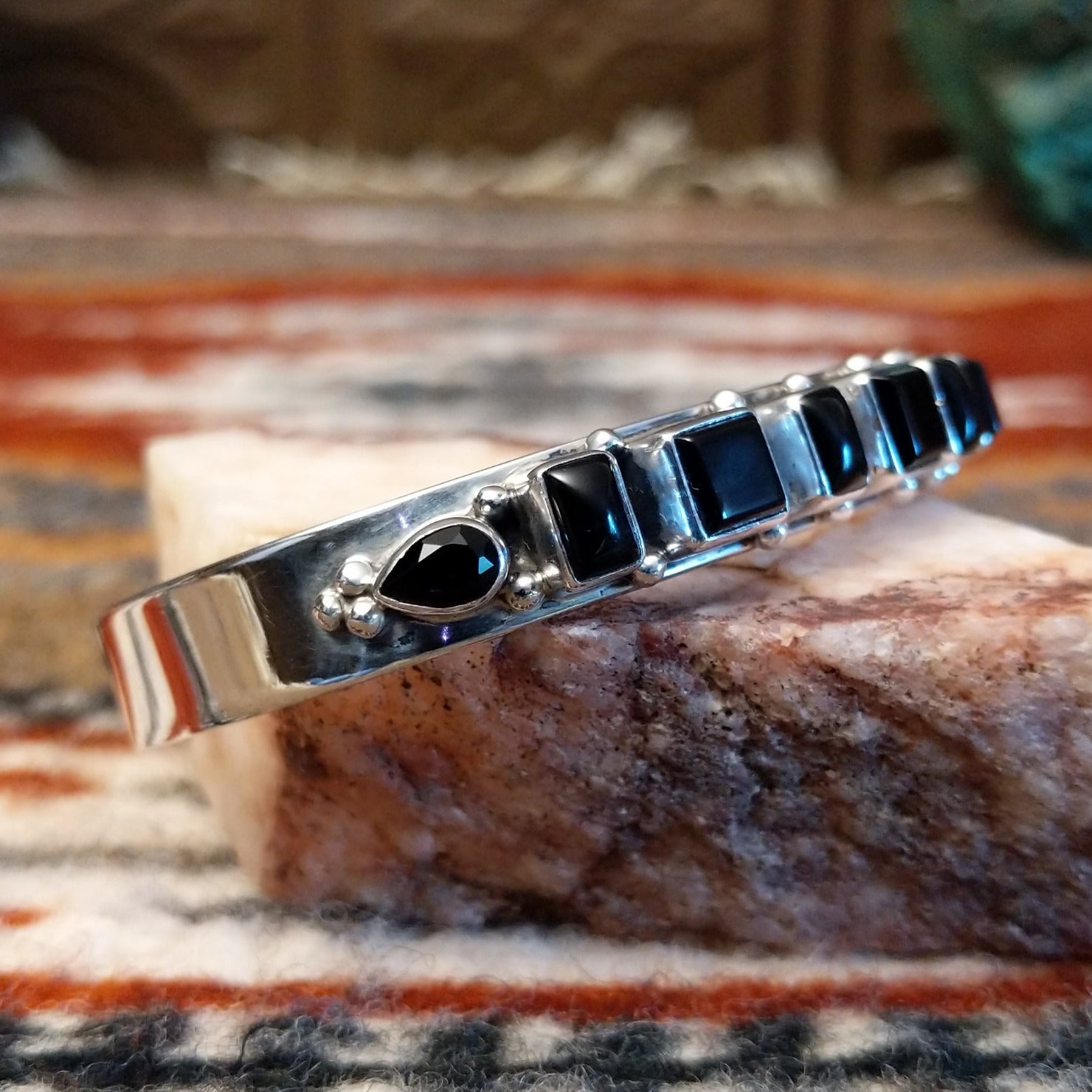 This black onyx bracelet by Juan Willie is the perfect addition to any wardrobe. The alternating square and rectangular stones give this cuff a classic feel.