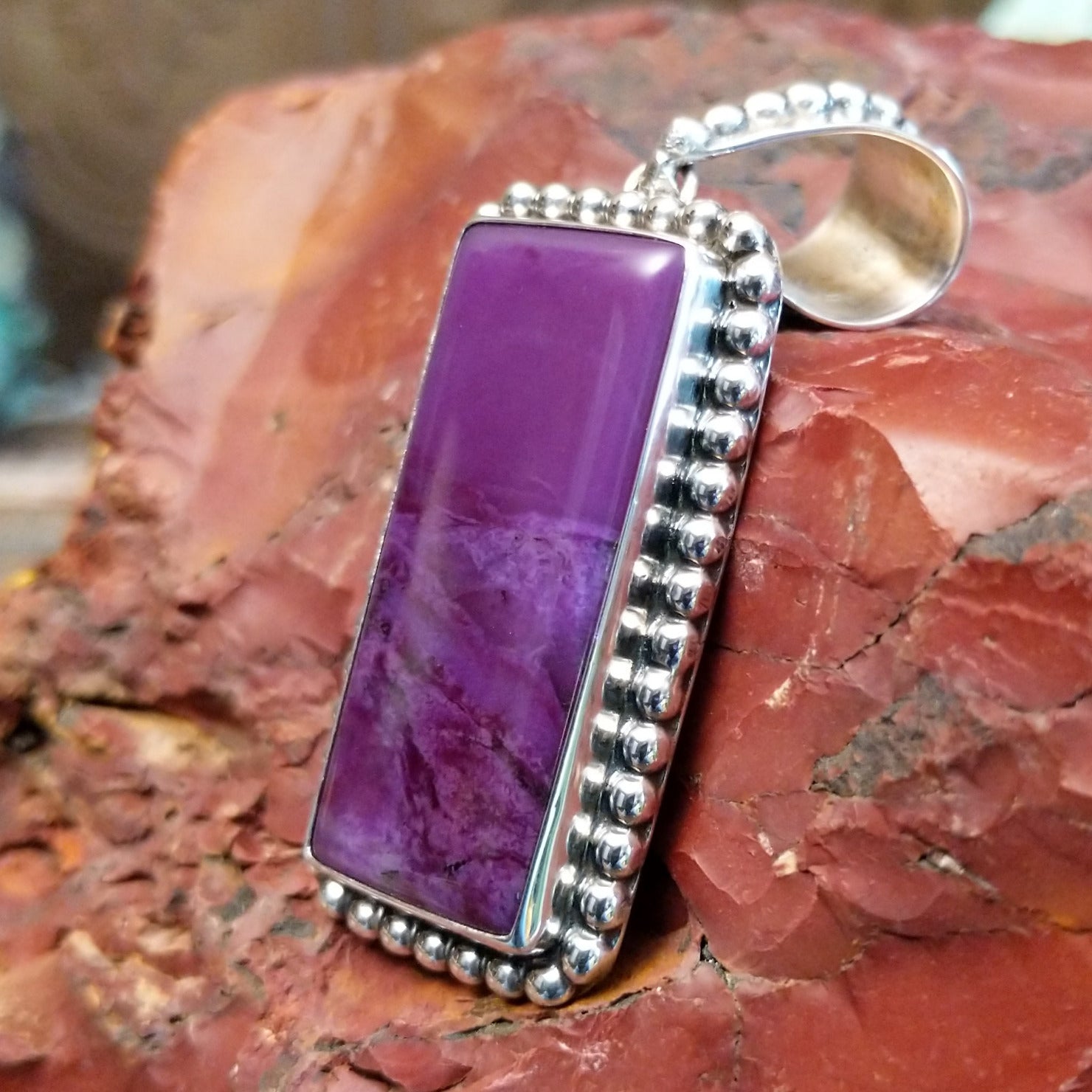Large Sugilite Rectangle Pendant by Fred Charley GJ-PND-0183