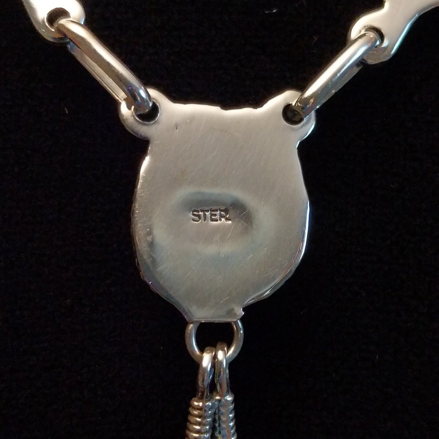 Crafted by Navajo artisan Verley Betone, this necklace showcases the turquoise centerpiece in a notched bezel. Surrounding the stone, the piece features feather motifs on the chain and dangling at the center, creating a beautiful statement piece for collectors.