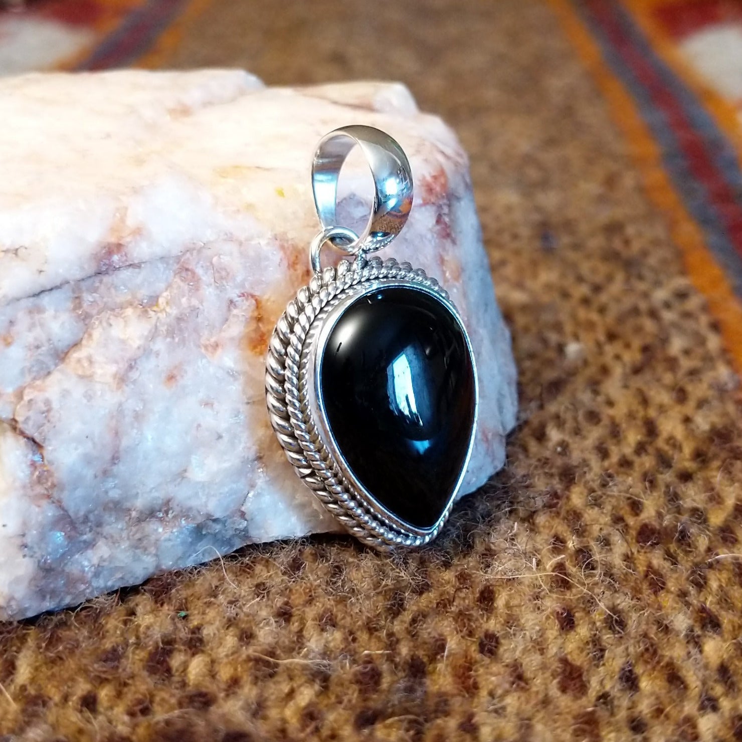Black Onyx Teardrop Pendant by Artie Yellowhorse GJ-PND-0201