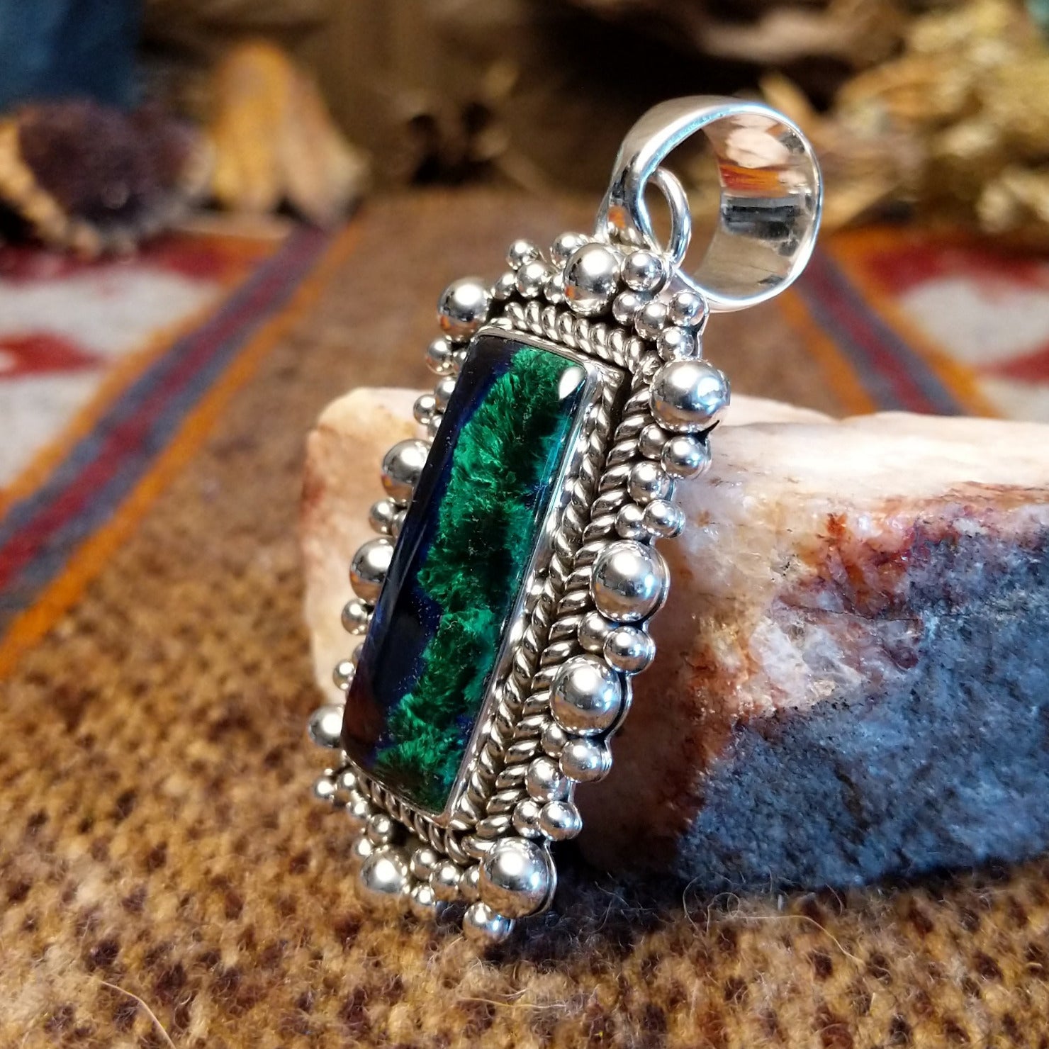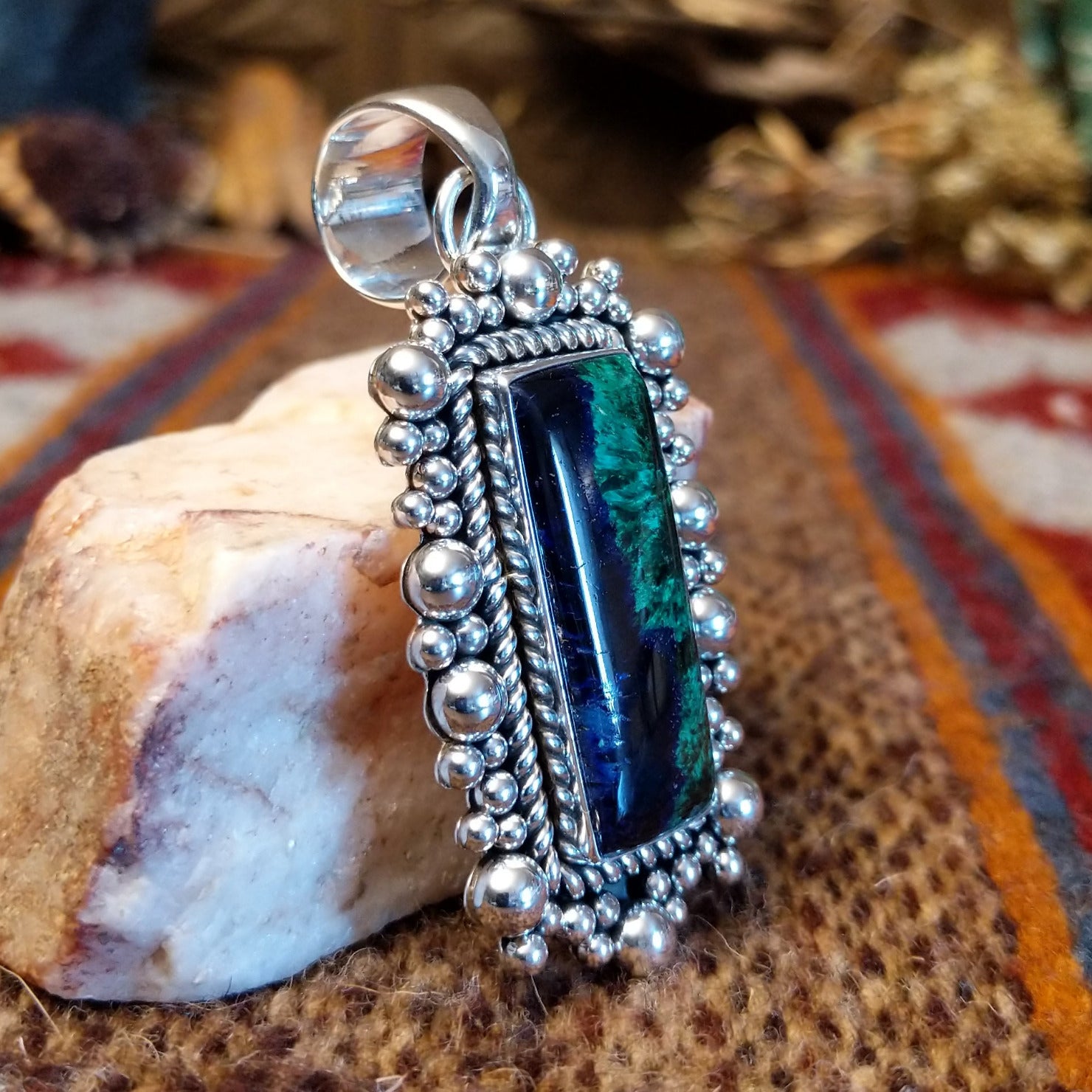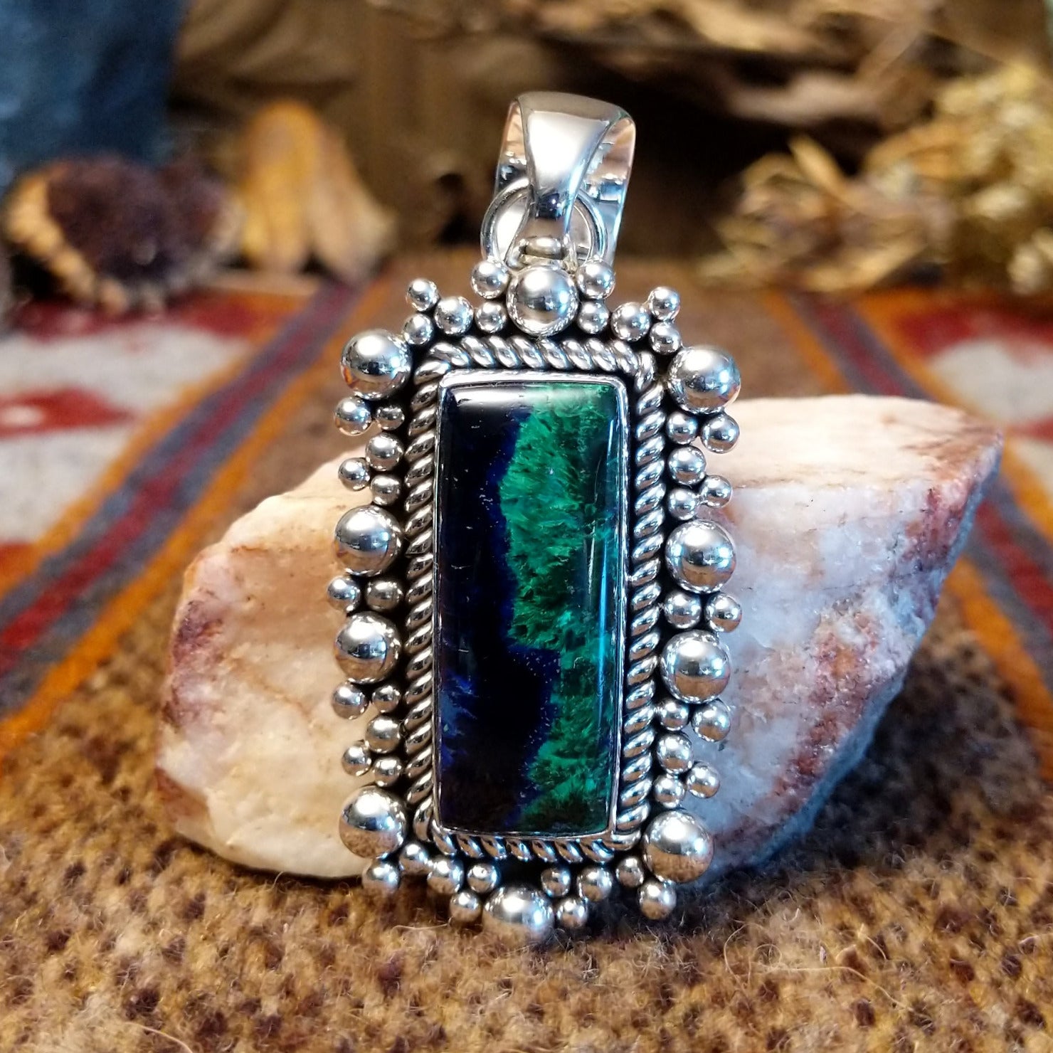 Dotted Azurite Malachite Pendant by Artie Yellowhorse GJ-PND-0198