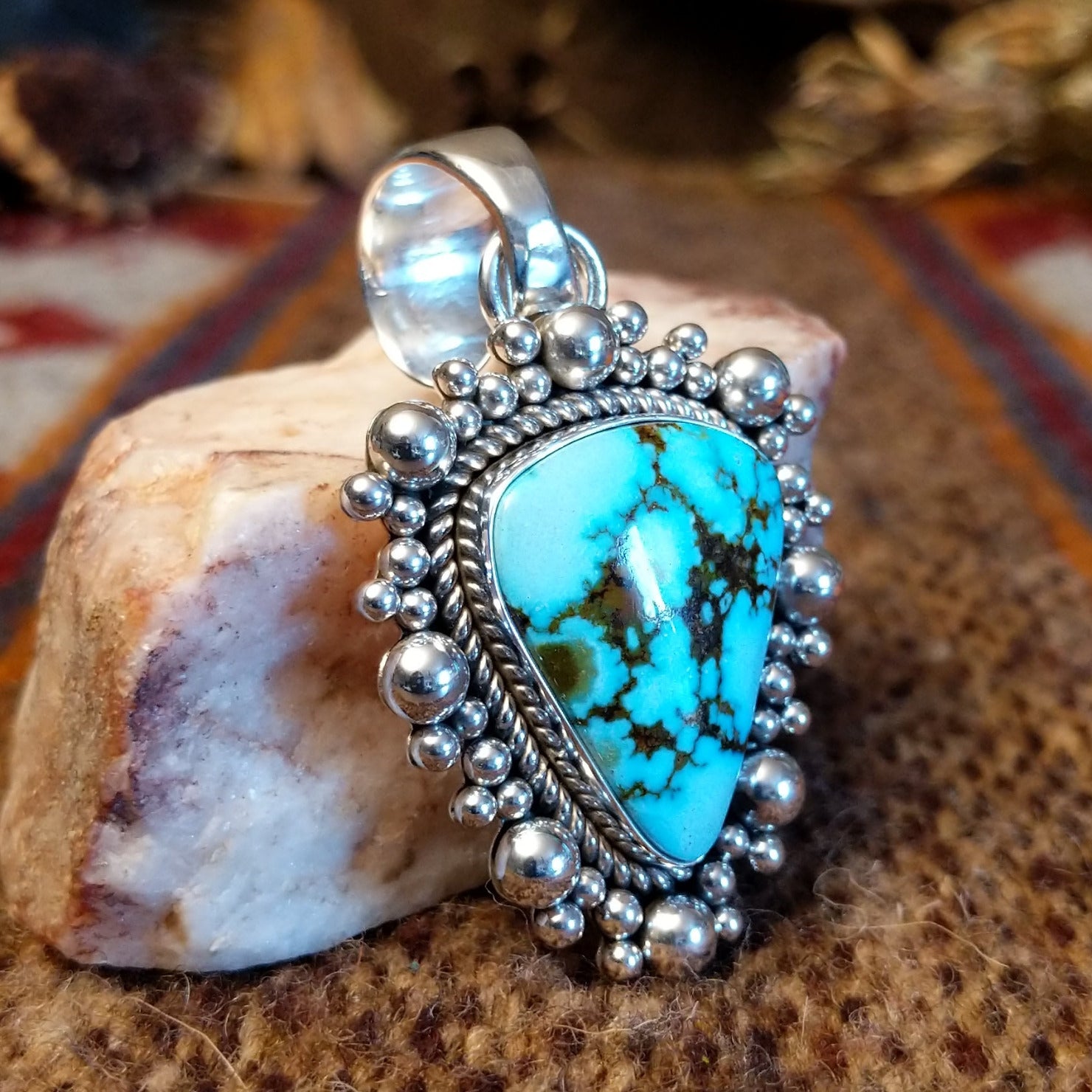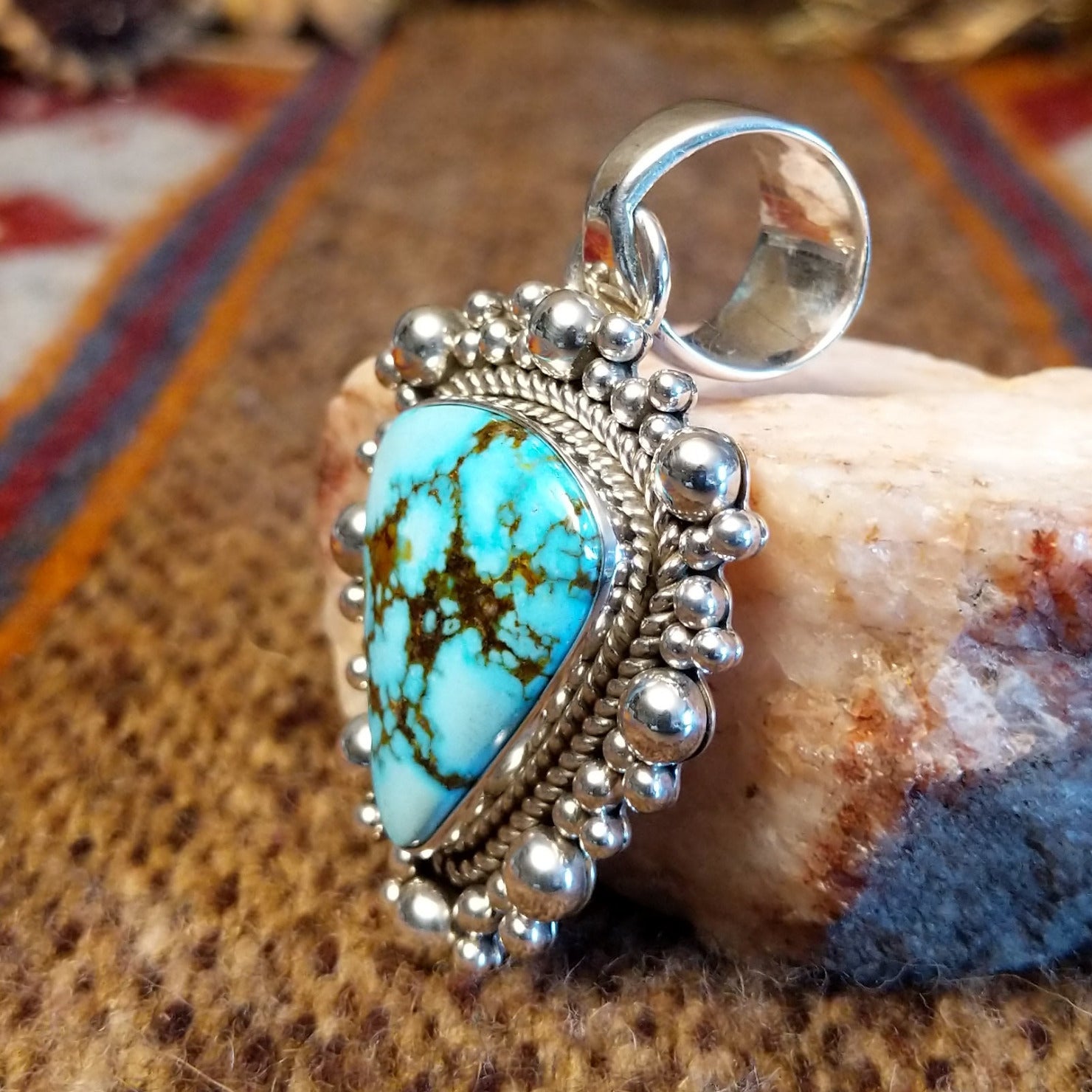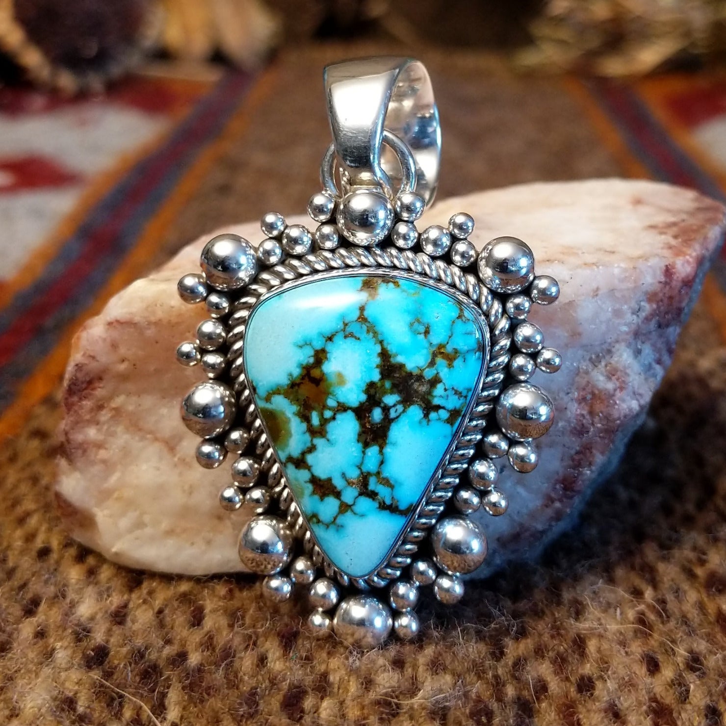 Dotted Kingman Turquoise Pendant by Artie Yellowhorse GJ-PND-0199