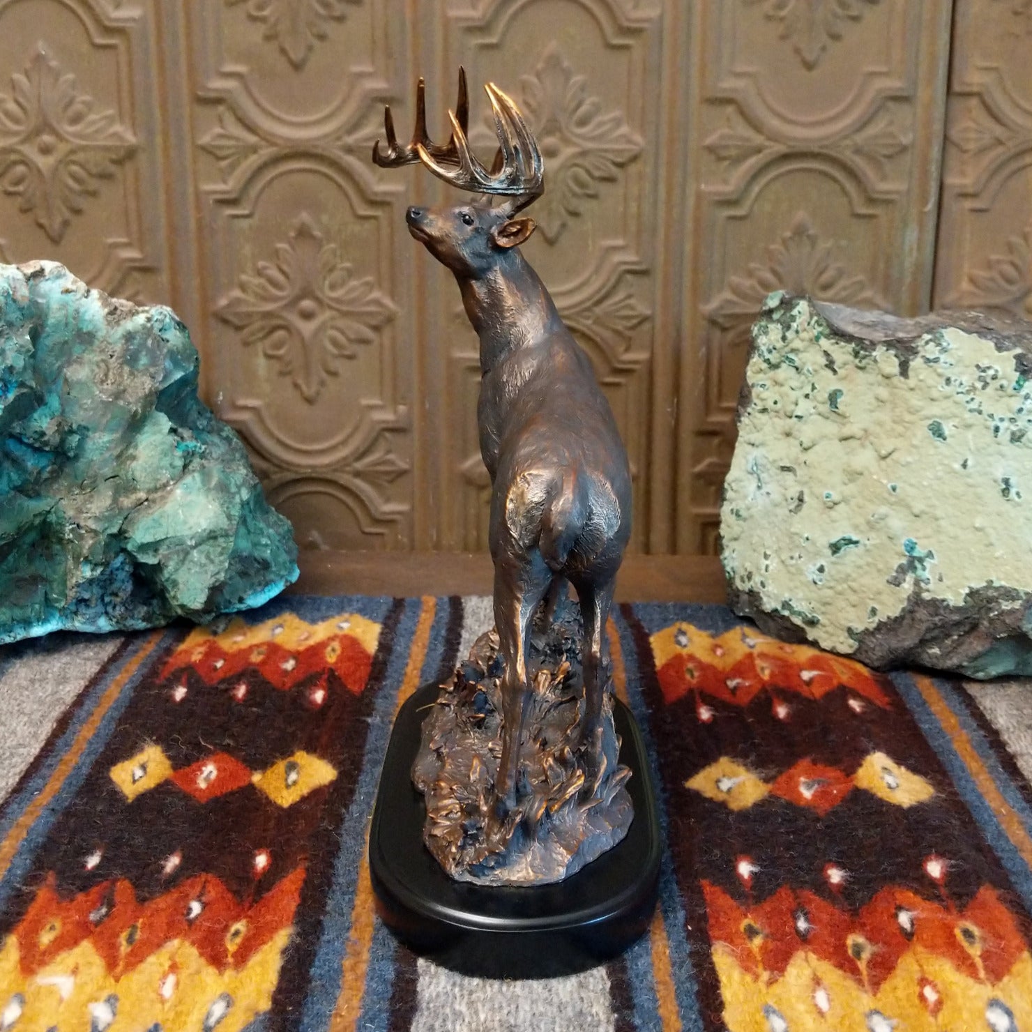 The "One Chance" sculpture, designed by Marc Pierce, depicts a majestic deer with sprawling antlers, crafted in proprietary resin with a textured base that evokes the wild beauty of natural landscapes. This piece blends natural elegance with the artist’s inspiring design.