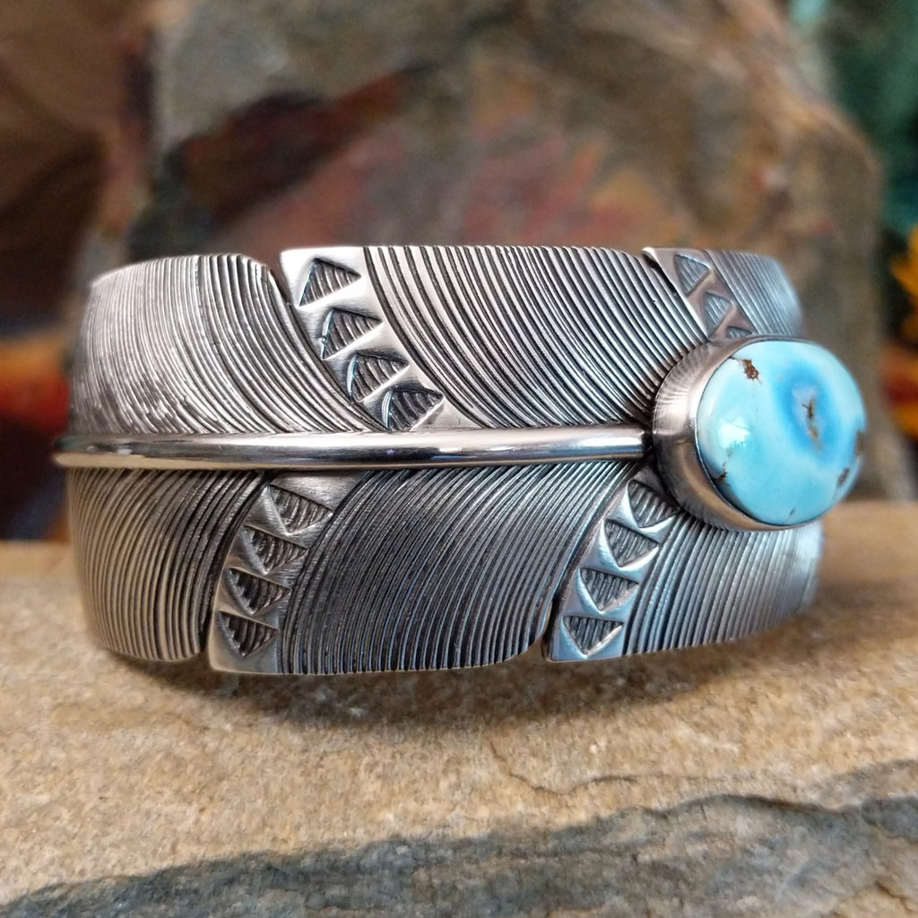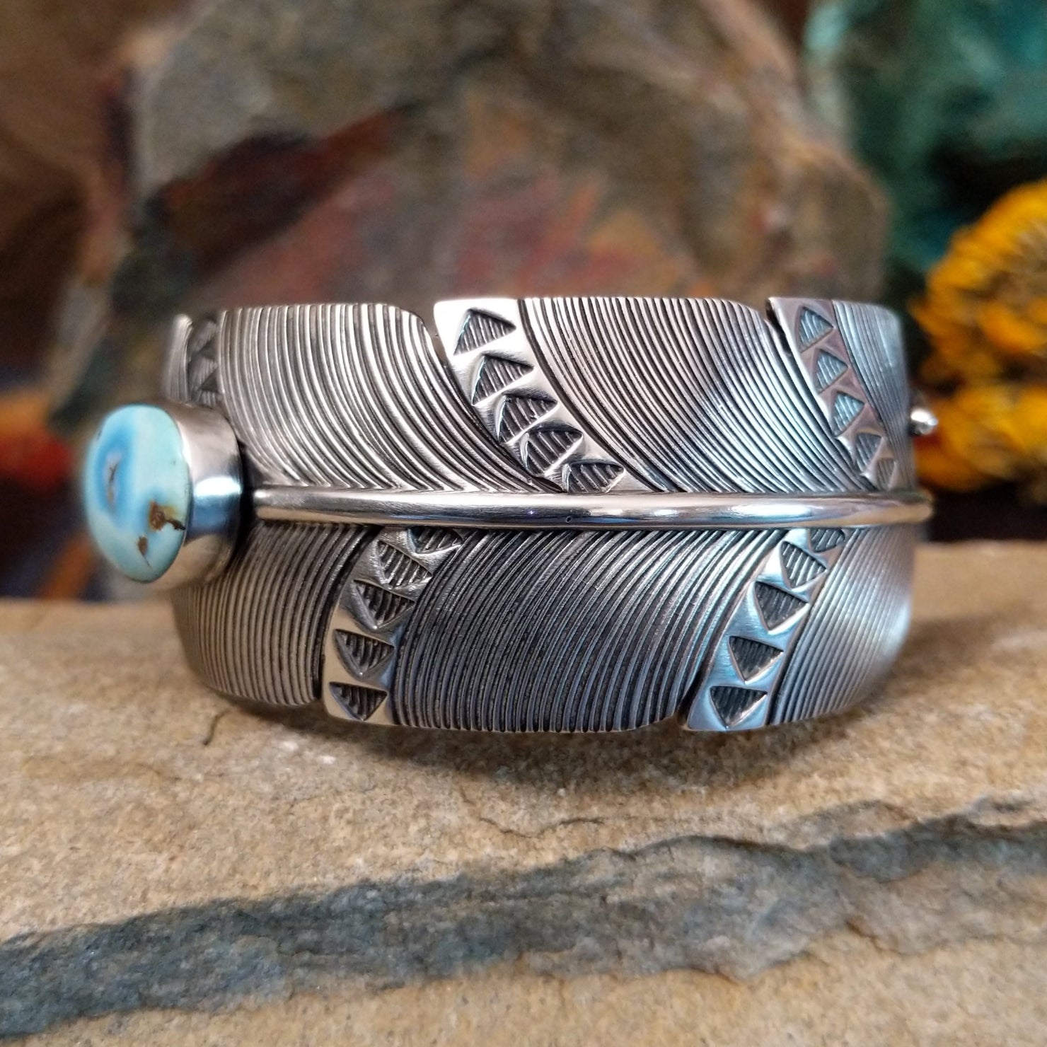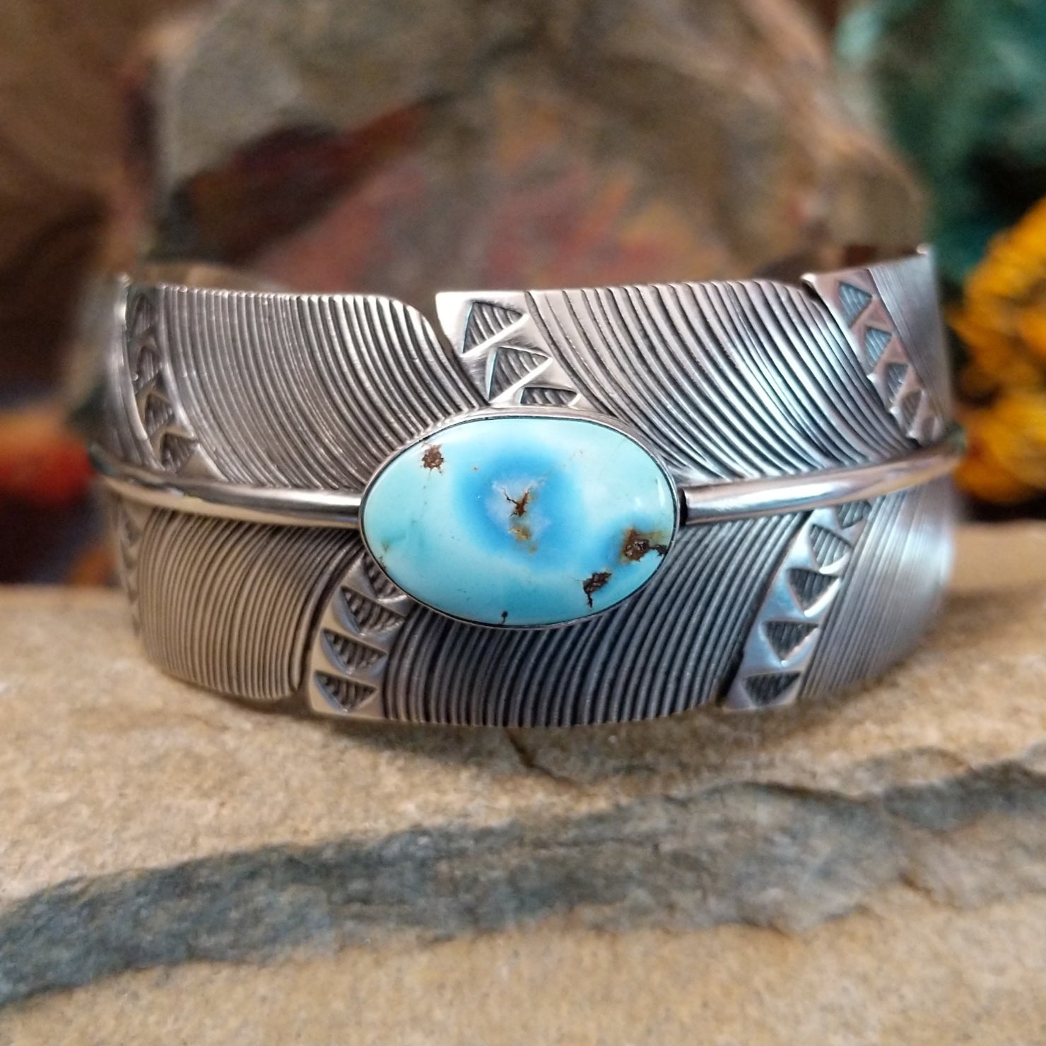 Golden Hills Turquoise Feather Cuff by Raymond Coriz GJ-BRC-0114