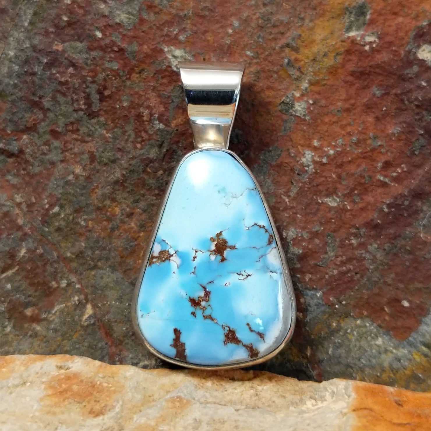 Golden Hills Turquoise Large Triangular Pendant by Leon Martinez GJ-PND-0095