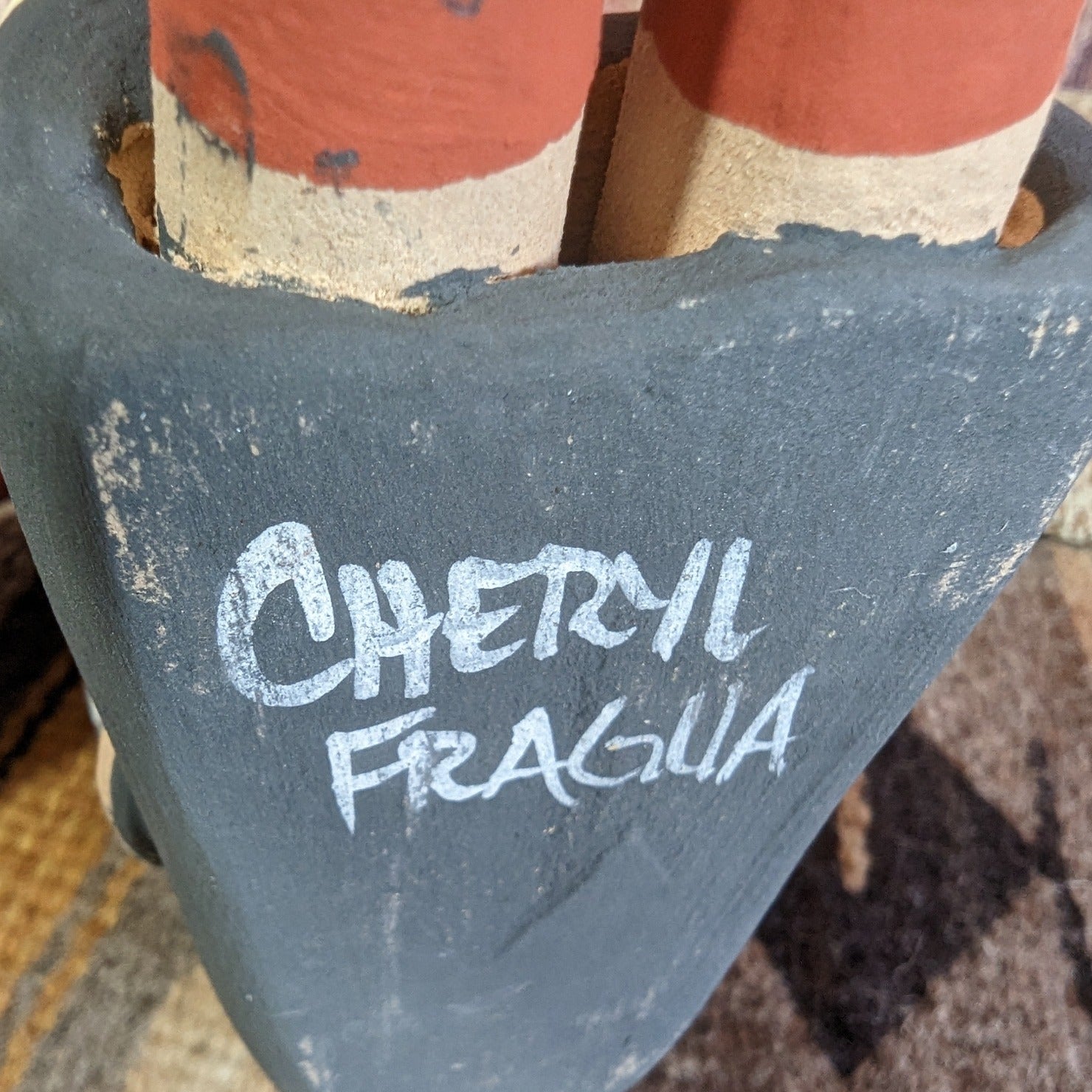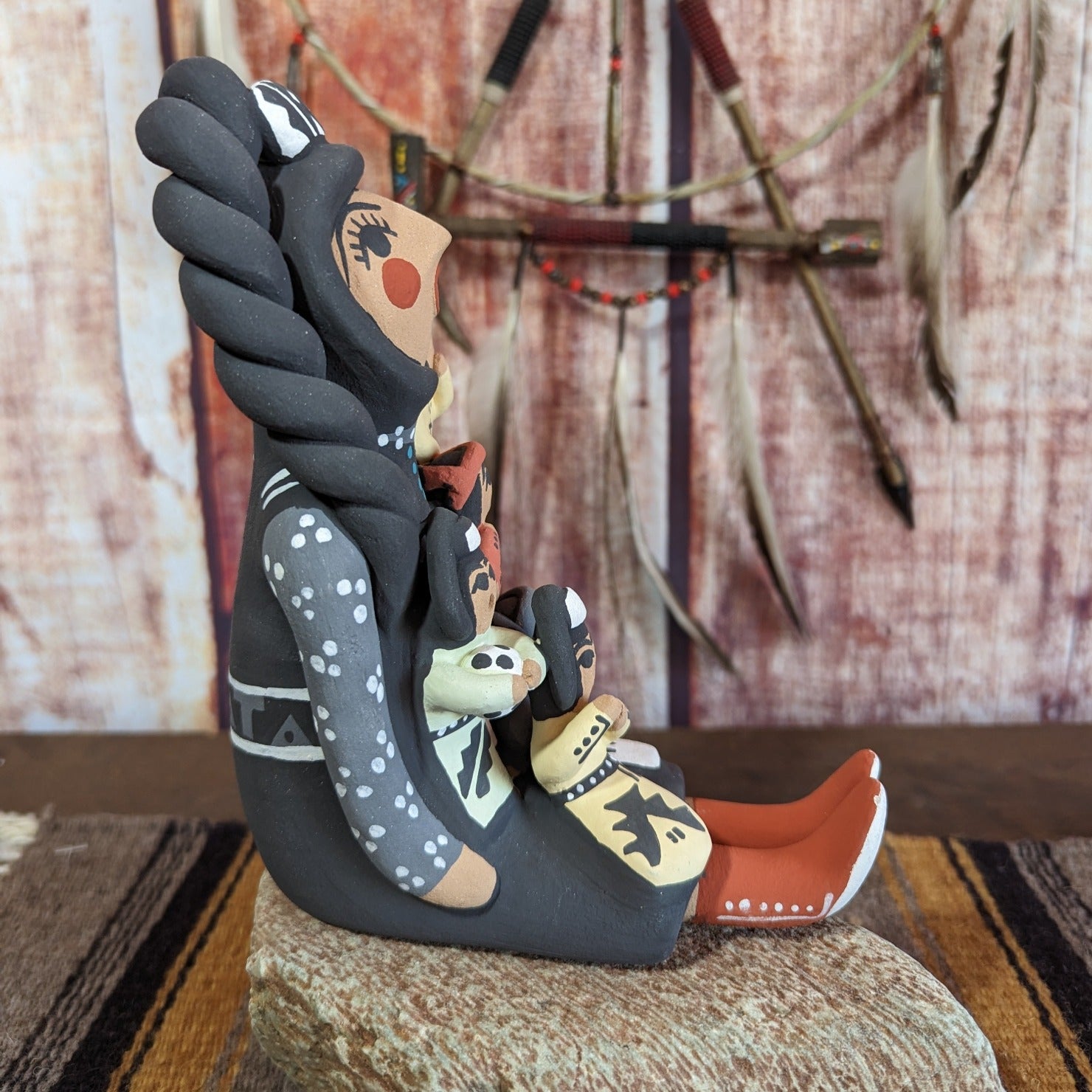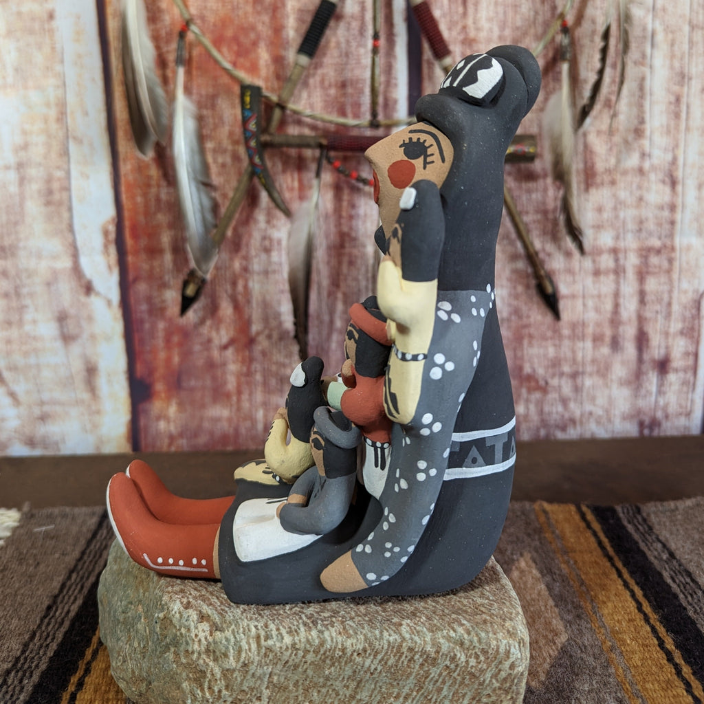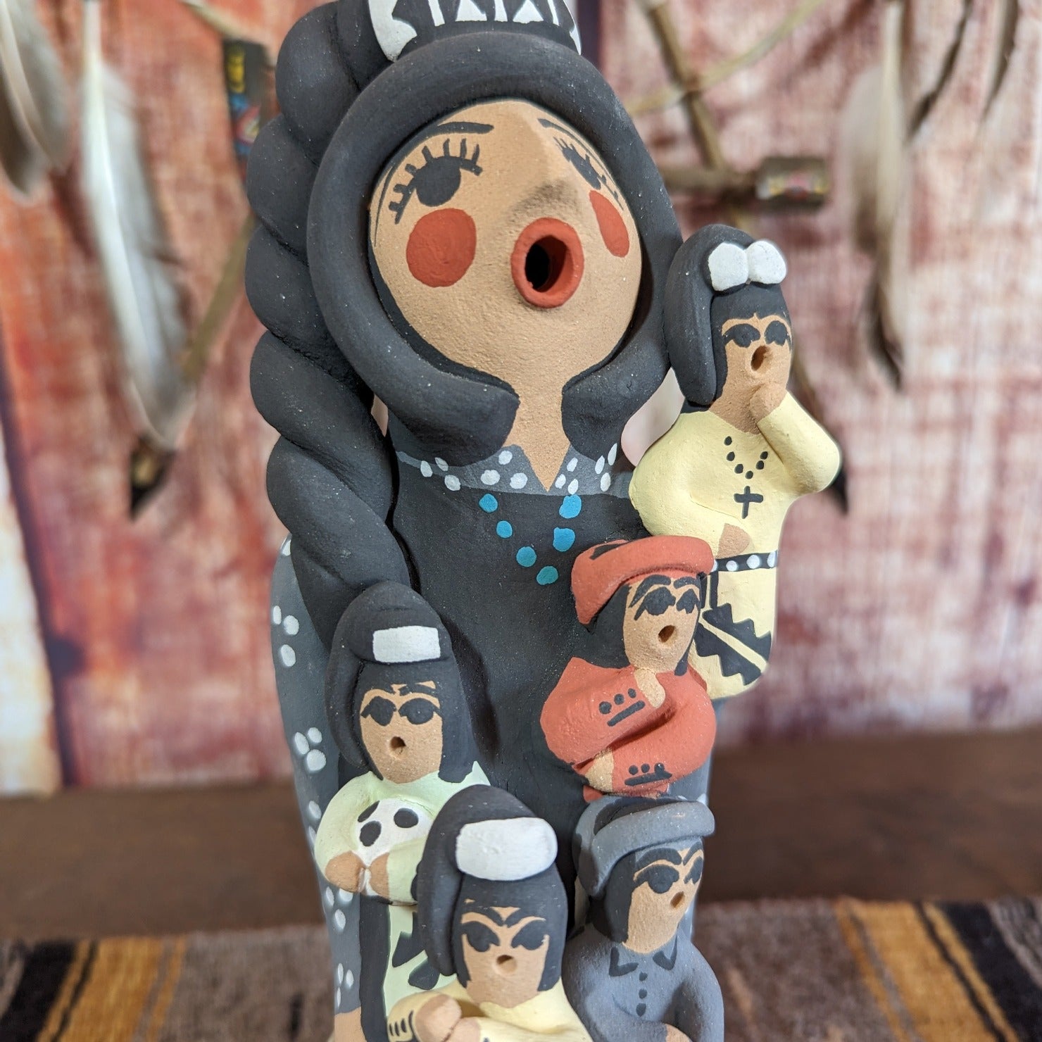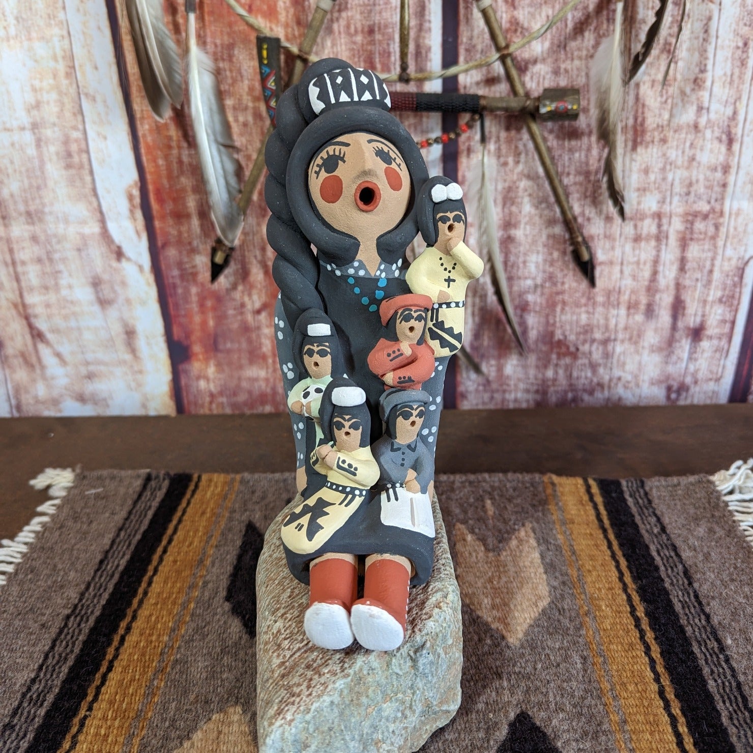 This is a Jemez Pueblo Storyteller with five children by Cheryl Fragua. Storytellers are sometimes referred to as "Singing Mothers" as their mouths are open in song or story to the children around them.