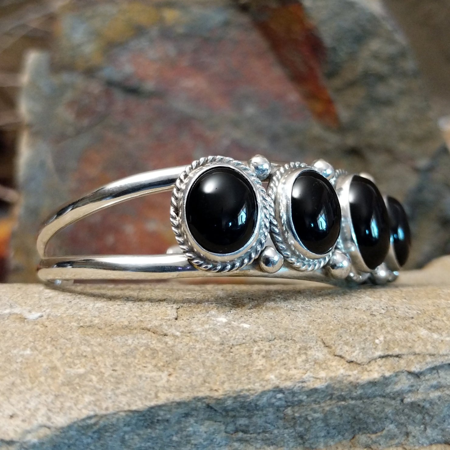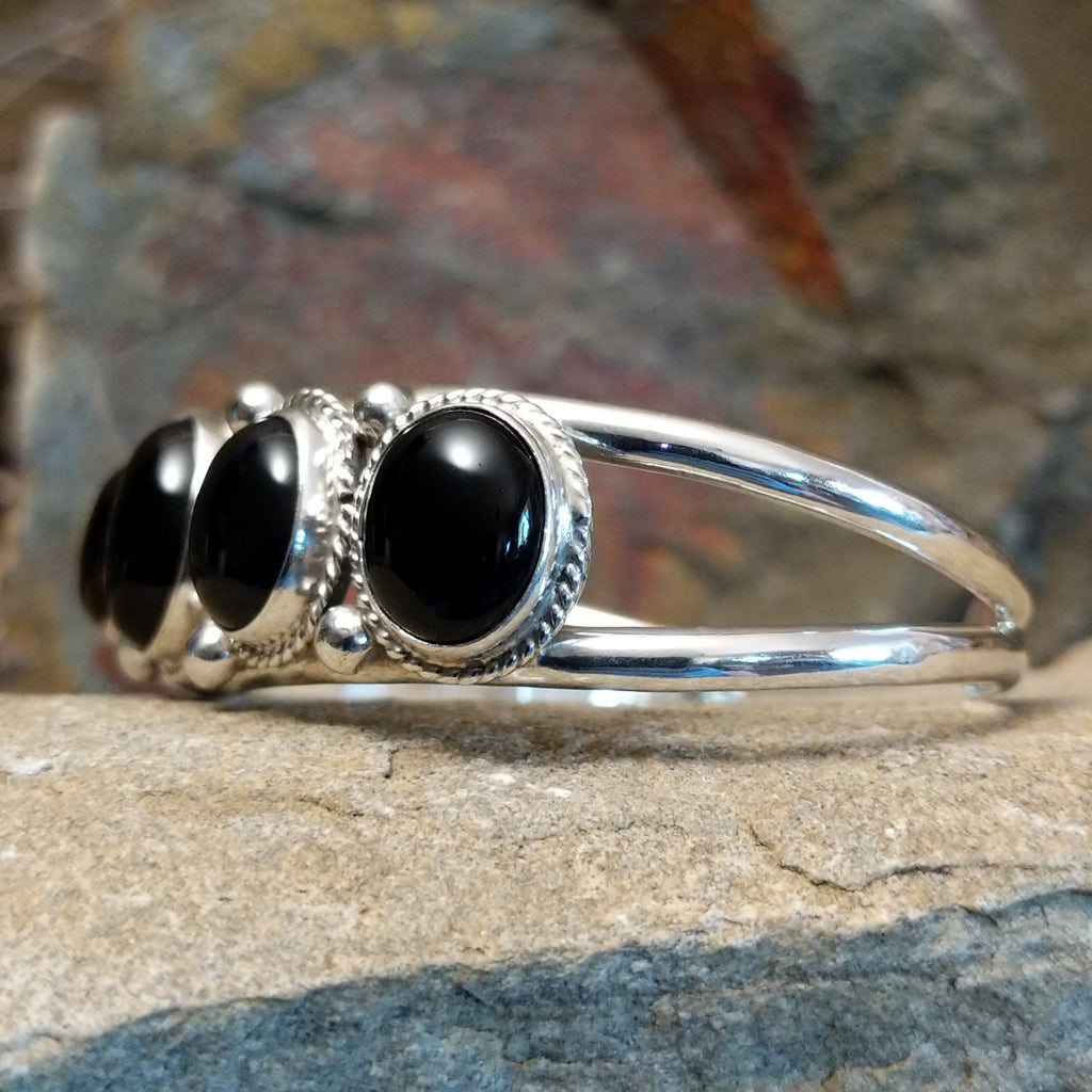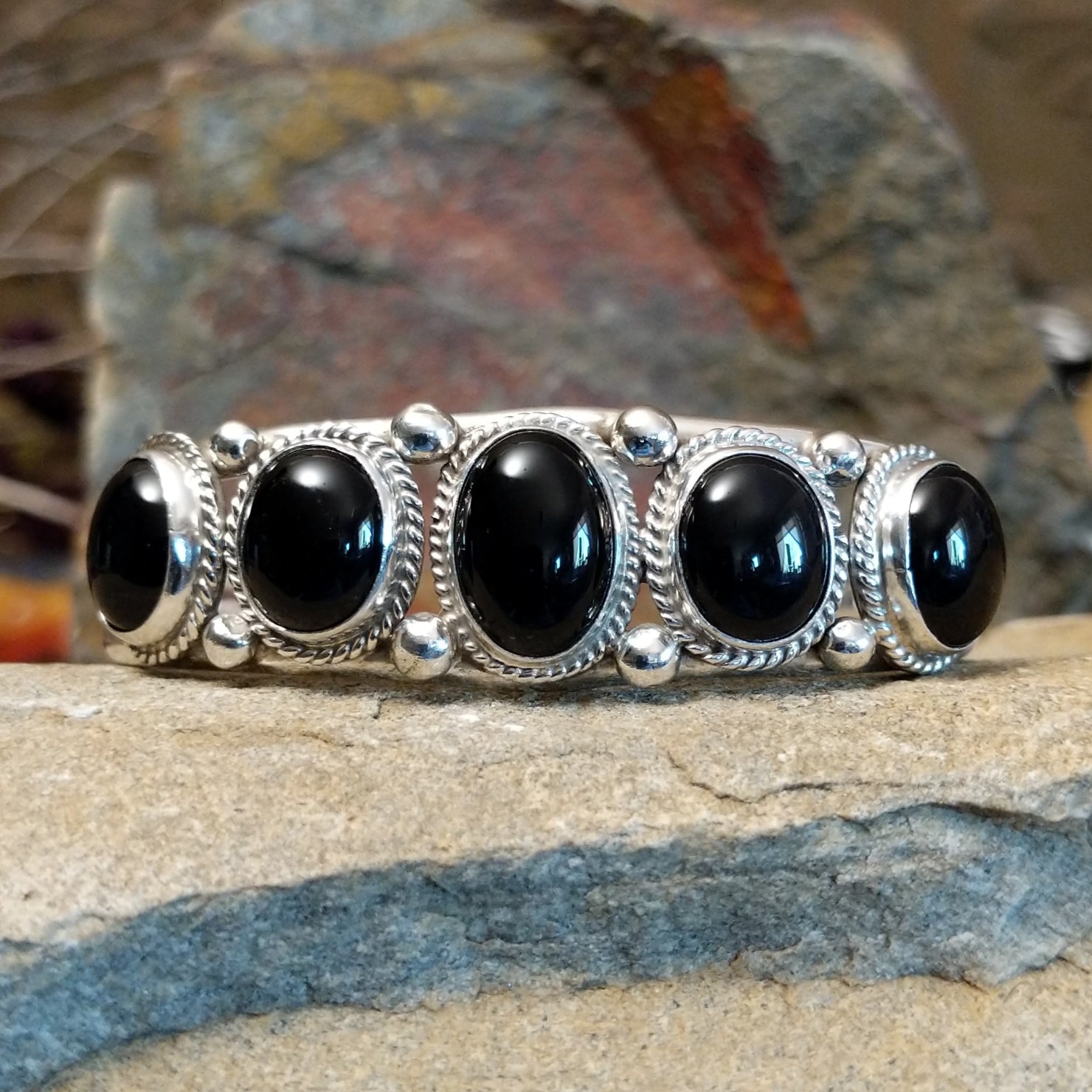 Navajo Made Black Onyx Quintet Cuff SWSG-BRC-0050