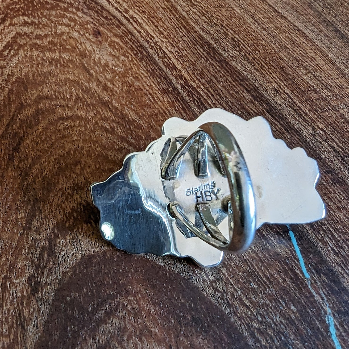 Turquoise and Coral Ring by Harry B. Yazzie GJ-RNG-0015 Size 6.75